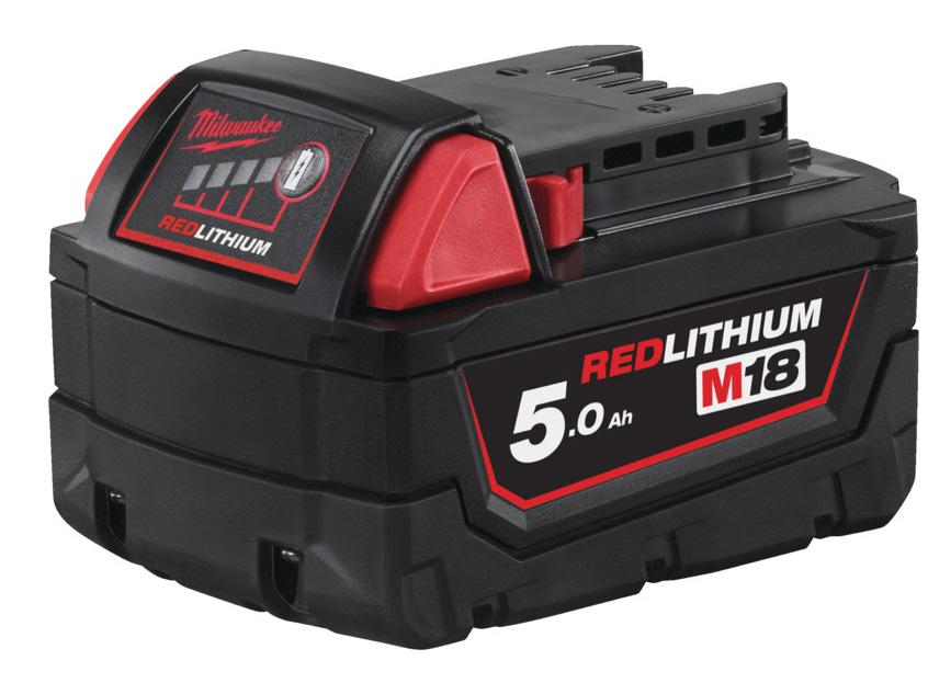2 x M18 B5 5,0 Ah REDLITHIUM™ batterier der giver ekstra kraft i en kompakt størrelse. Nu med mere kraft, længere driftstid og flere opladninger!