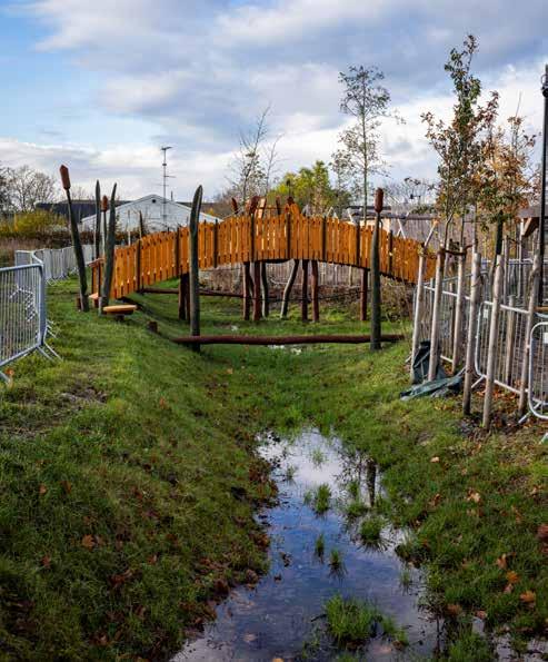 En ny legeplads, der indgår i en større udvikling af Urbanplanen på Amager i København, styrker både biodiversiteten, fungerer som et klimatilpasningsanlæg og er et udendørs ’biologilokale’.
