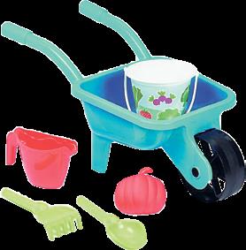 U praktičnim kolicima dobivate grablje, alat za prekapanje tla, motiku, malu lopatu, kantu za zalijevanje i alat za sadnju