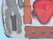 pila na baterije izgleda poput prave, povlačenjem ručice pila se pali Pritiskom tipke na dršci ispušta zvuk piljenja i okreće se lanac tako da će dijete imati pravi doživljaj piljenja, ali bez ozlijeda Pila radi s 3 baterije od 1,5V tipa koje nisu uključne u pakiranje