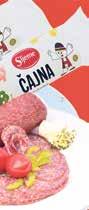 Čajna kobasica 80g, srijemska kobasica 80g, bečka kobasica 80g, parizer 150g, šunkarica 100g, tirolska kobasica 120g, wiener kobasica 100g Sljeme