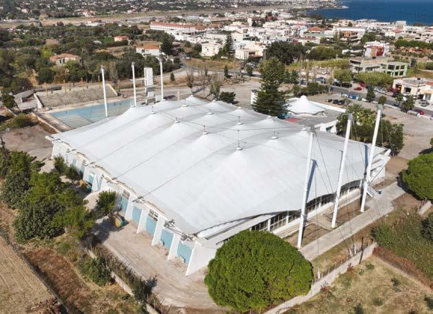 Η Arka δημιουργεί υβριδικές εφαρμογές υψηλής τεχνολογίας όπως θερμομονωμένα στέγαστρα από εφελκυόμενες μεμβράνες για την κάλυψη μεγάλων επιφανειών. Χαρακτηριστικό παράδειγμα είναι η στέγαση του Ιωνικού Κολυμβητηρίου της Χίου, συνολικής επιφάνειας 3.500 m2. Για την κάλυψη της εγκατάστασης του κολυμβητηρίου επιλέχθηκε εφελκυόμενη μεμβράνη, η οποία είναι πλήρως ανακυκλώσιμη και εναρμονισμένη στα διεθνή πρότυπα περιβαλλοντικής ευαισθησίας. Η ενεργειακά άψογη συμπεριφορά του κελύφους περιορίζει δραστικά τις απαιτήσεις θέρμανσης και κλιματισμού στον εσωτερικό χώρο του κολυμβητηρίου με χαμηλό κόστος συντήρησης. ARKA SYNTHESIS Μ.Ε.Π.Ε., Τ: 2107473464, www.arkasynthesis.gr