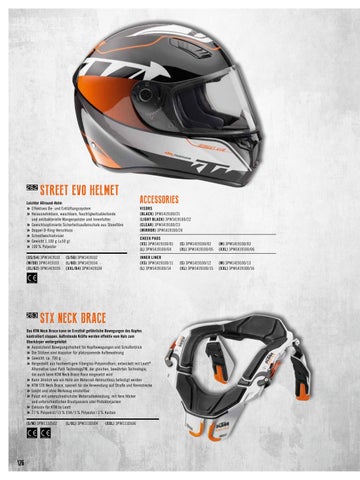 Das KTM Neck Brace kann im Ernstfall gefährliche Bewegungen des Kopfes kontrolliert stoppen. Auftretende Kräfte werden effektiv vom Hals zum Oberkörper weitergeleitet Ausreichend Bewegungsfreiheit für Kopfbewegungen und Schulterblick Die Stützen sind klappbar für platzsparende Aufbewahrung Gewicht: ca. 700 g Hergestellt aus hochwertigem Fiberglas-Polyamidharz, entwickelt mit Leatt® Alternative Load Path TechnologyTM, der gleichen, bewährten Technologie, die auch beim KTM Neck Brace Race eingesetzt wird Kann ähnlich wie ein Helm am Motorrad-Helmschloss befestigt werden KTM STX Neck Brace, speziell für die Verwendung auf Straße und Rennstrecke Leicht und ohne Werkzeug einstellbar Passt mit unterschiedlichster Motorradbekleidung, mit Aero Höcker und unterschiedlichen Brustpanzern oder Protektorjacken Exklusiv für KTM by Leatt 77 % Polyamid / 15 % EVA / 5 % Polyester / 3 % Karbon