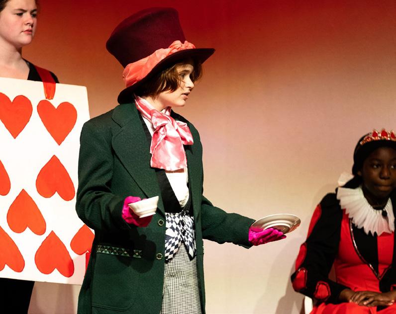 Formal performing arts education begins in Middle School when students in 6th, 7th, and 8th grade elect to participate in Spotlights! — our Middle School Drama troupe which offers one of their first coed activities. They may participate either as actors or stage crew (including set design, props, costumes, lighting, sound, publicity, and more). Students may also apply for leadership positions as a stage manager or technical director. In this experience our Middle School students develop a well-rounded foundation for theater, focusing on collaborative scene-building, script analysis and character development, acting techniques, improvisation, and technical design. Past productions include Frozen Jr., James and the Giant Peach, and Beauty and the Beast