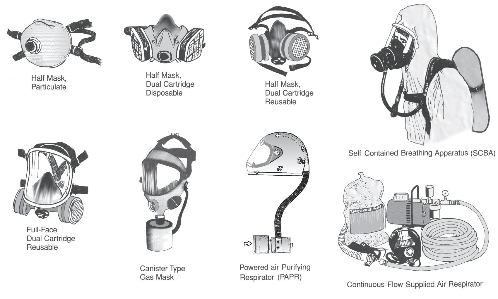Respirators are worn by persons who must work in environments where the air is unfit to breathe and either have the function of filtering the air before the user is exposed or they supply a separate source of clean air.