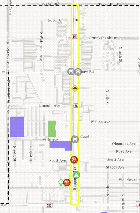 The study area consists of a 1.5 mile stretch of Imperial Avenue, or State Route 86 (SR 86) from Treshill Road to Adams Avenue.