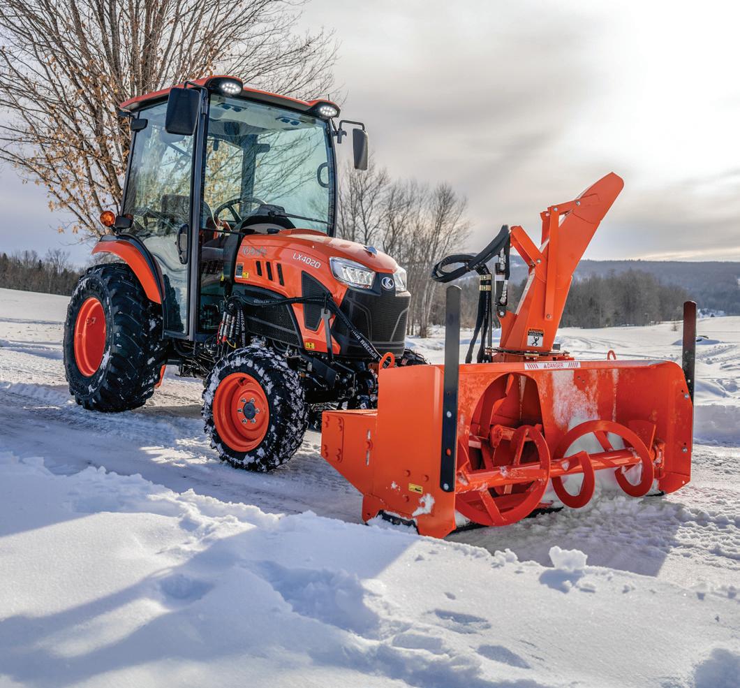 Haul firewood and blow snow in an LX20 Series summer oasis, even well after dark, with big windows and bright lights for high visibility on short winter days.