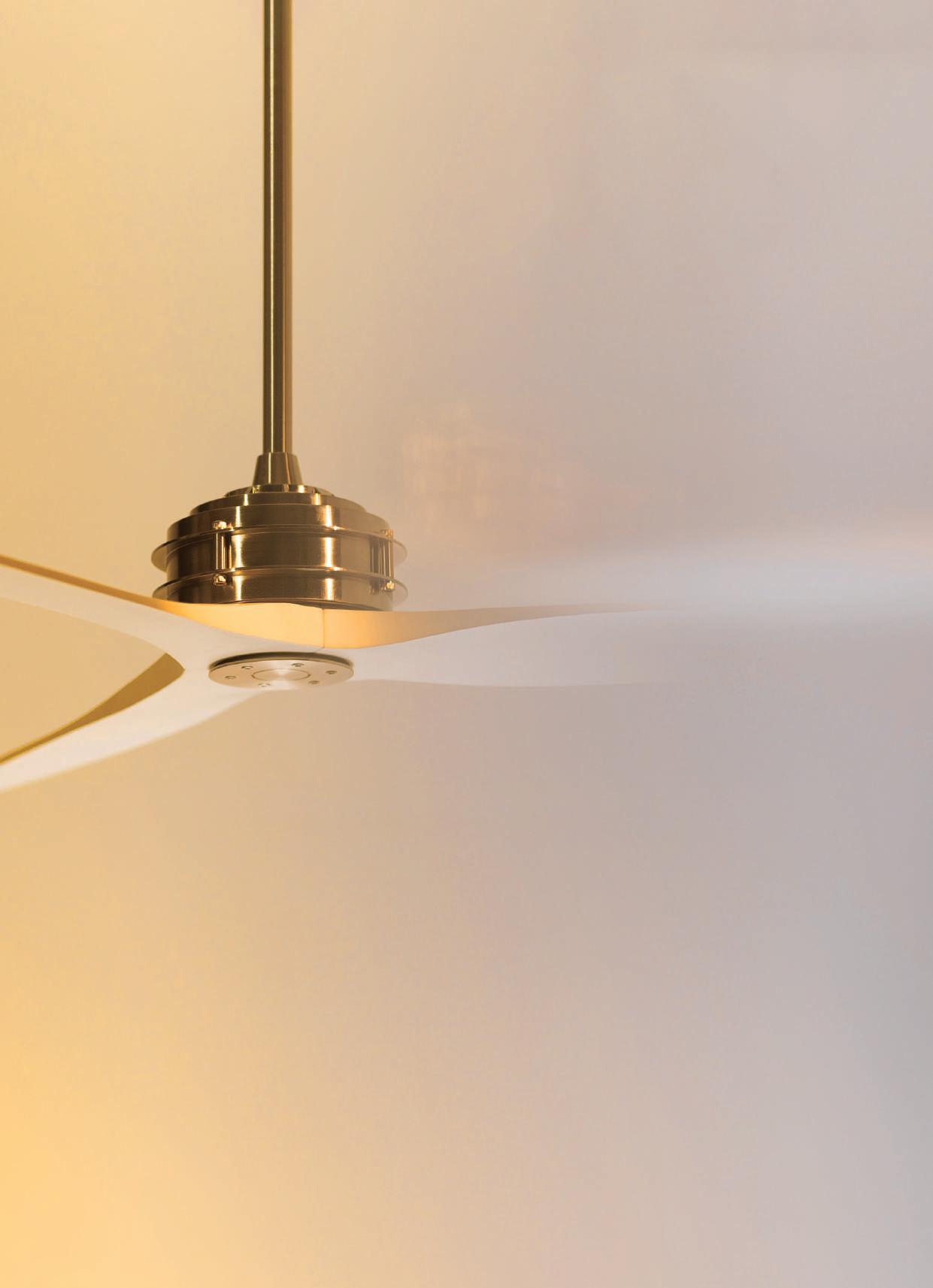 The blade design emanates warmth with its natural wood sentiments. The sublime contour of the motor housing's silhouette mirrors the precision of metalworks and innovative engineering.