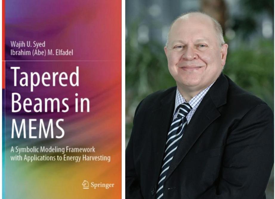 A new book titled ‘Tapered Beams in MEMS: A Symbolic Modeling Framework with Applications to Energy Harvesting,’ co-authored by Khalifa University’s Dr. Ibrahim M. Elfadel, Professor, Computer and Information Engineering, and corporate researcher Wajih U. Syed was released by Springer Nature. The 236-page hard cover and e-book provides a detailed look at the important role of microelectromechanical systems (MEMS) – technology used to create micro sensors and actuators, focusing on the design and use for energy harvesting applications.