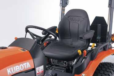To increase comfort while working, the new high-back seat is specifically designed to absorb shock and reduce operator fatigue. Armrests are standard equipment for added comfort.
