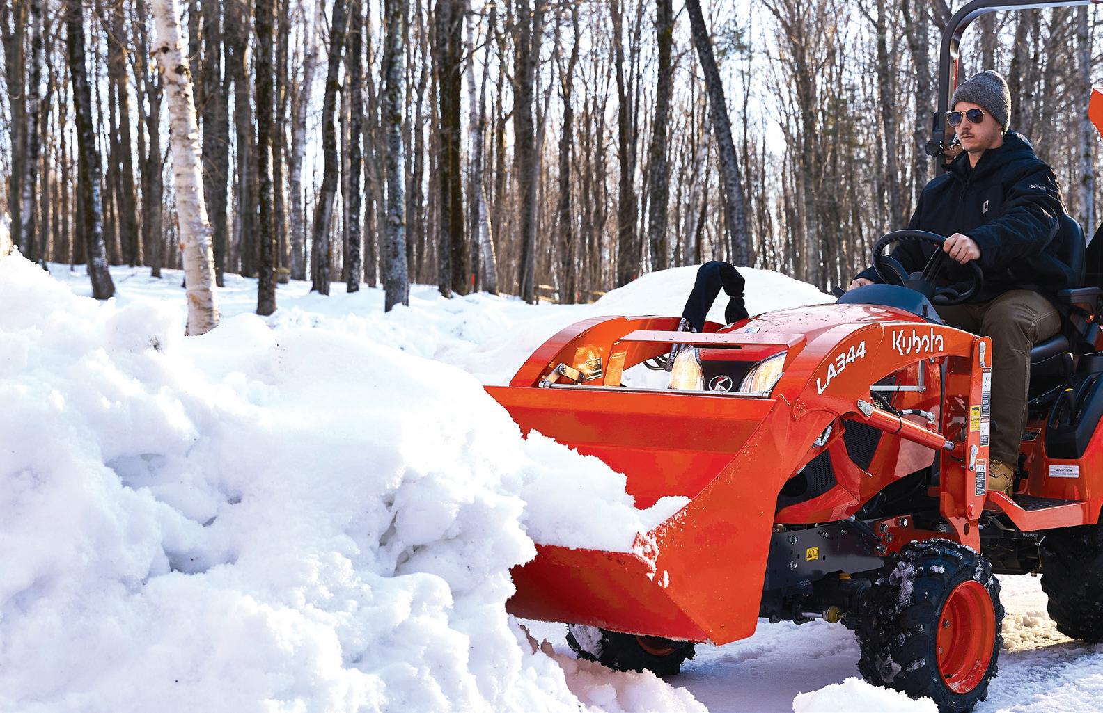 Kubota Tractor Corporation reserves the right to change the stated specifications without notice. This brochure is for descriptive purposes only and reasonable efforts were used to set forth the contained information; some items shown may be optional and some products shown may not be available at all dealerships. Kubota disclaims all representations and warranties, express or implied, or any liability from the use of this brochure. For complete warranty, safety and product information, consult your local Kubota dealer and the operator’s manual. Power (HP/KW) and other specifications are based on various standards or recommended practices. For your safety, Kubota strongly recommends the use of a Rollover Protective Structure (ROPS) and seat belt in almost all applications. This brochure is intended for the United States and US territories only. For information regarding Kubota products or services outside these areas, see Kubota Corporation’s global web site. Kubota does not provide parts, warranty or service for any Product which is re-sold or retailed in any country other than the country for which the Product(s) were designed or manufactured.