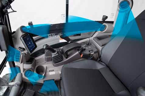A quieter cabin provides a more stress-free working environment. The low noise level protects the operator from engine noise and other loud sounds.