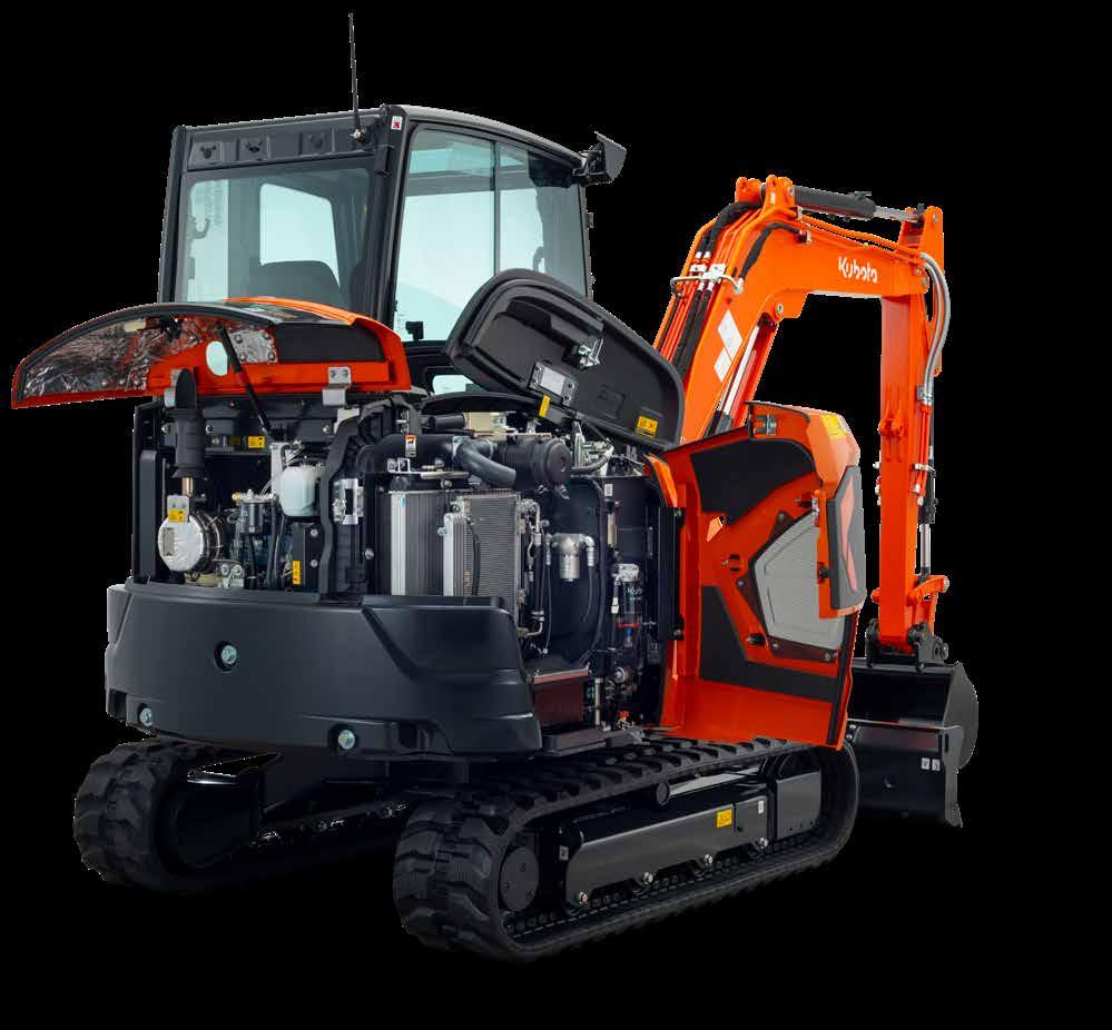 Kubota has made routine maintenance extremely simple by consolidating primary engine components onto one side for easier access. The engine and other vital components can be inspected quickly and easily.