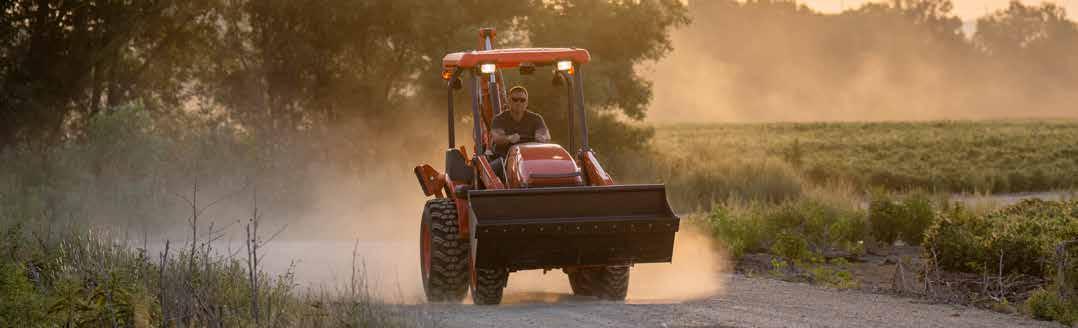Kubota Tractor Corporation reserves the right to change the stated specifications without notice. This brochure is for descriptive purposes only and reasonable efforts were used to set forth the contained information; some items shown may be optional and some products shown may not be available at all dealerships. Kubota disclaims all representations and warranties, express or implied, or any liability from the use of this brochure. For complete warranty, safety and product information, consult your local Kubota dealer and the operator’s manual. Power (HP/KW) and other specifications are based on various standards or recommended practices. For your safety, Kubota strongly recommends the use of a Rollover Protective Structure (ROPS) and seat belt in almost all applications. This brochure is intended for the United States and US territories only. For information regarding Kubota products or services outside these areas, see Kubota Corporation’s global web site. Kubota does not provide parts, warranty or service for any Product which is re-sold or retailed in any country other than the country for which the Product(s) were designed or manufactured.