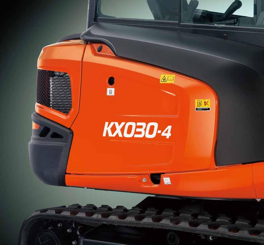 With the KX030-4, operators can work with confidence knowing they are protected by the ROPS/OPG on both the open station or optional enclosed cab. Furthermore, the engine compartment is ergonomically organized with easy access to the radiator and engine oil cooler to make routine maintenance and inspections a breeze.