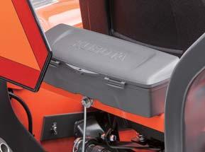 A large toolbox is located right behind the operators seat for easy access. Models with the backhoe will have the toolbox above the left fender, next to the operators seat.