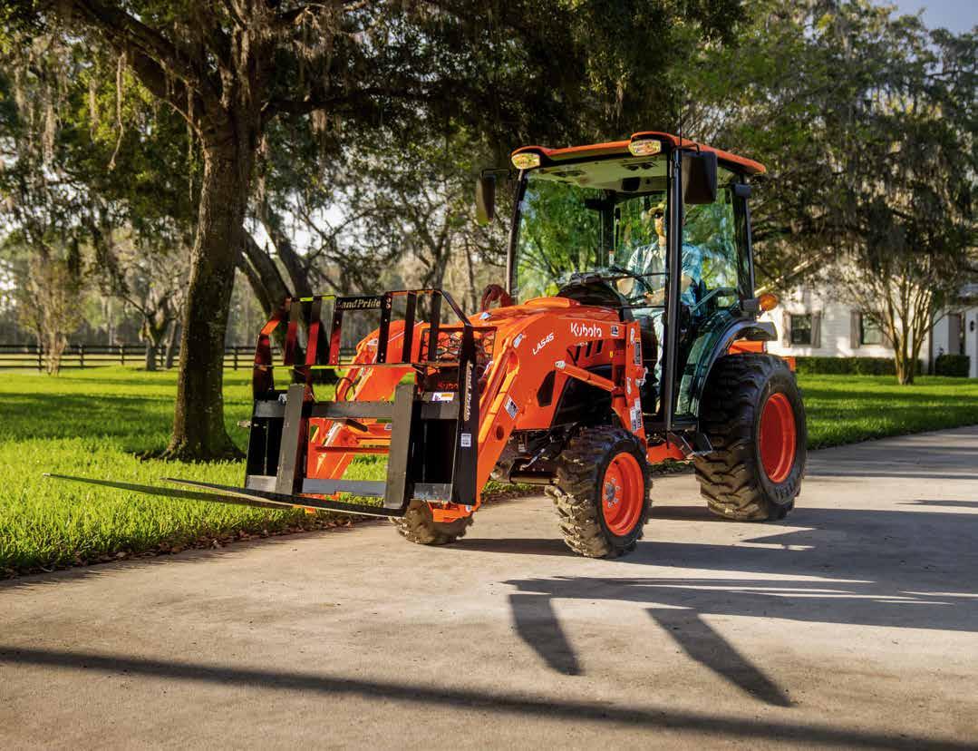 Kubota Tractor Corporation reserves the right to change the stated specifications without notice. This brochure is for descriptive purposes only and reasonable efforts were used to set forth the contained information; some items shown may be optional and some products shown may not be available at all dealerships. Kubota disclaims all representations and warranties, express or implied, or any liability from the use of this brochure. For complete warranty, safety and product information, consult your local Kubota dealer and the operator’s manual. Power (HP/KW) and other specifications are based on various standards or recommended practices. For your safety, Kubota strongly recommends the use of a Rollover Protective Structure (ROPS) and seat belt in almost all applications. This brochure is intended for the United States and US territories only. For information regarding Kubota products or services outside these areas, see Kubota Corporation’s global web site. Kubota does not provide parts, warranty or service for any Product which is re-sold or retailed in any country other than the country for which the Product(s) were designed or manufactured.