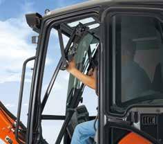 Unlike many excavator windows, the front glass window of the KX033-4 opens with ease. Just flip the latches on the window sides and slide it up. A gas-assist mechanism makes this action almost effortless.