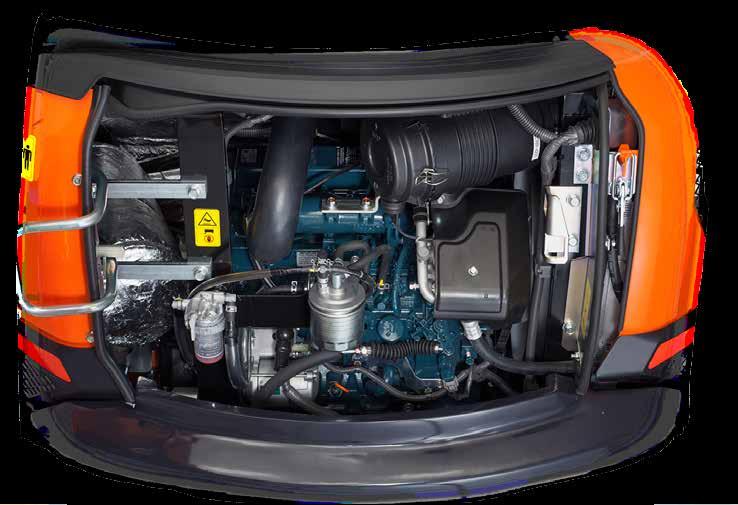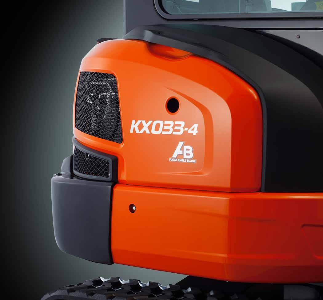 The KX033-4 is powered by Kubota’s impressive direct injection engine. Engineered with the power to maximize digging and lifting performance, it also delivers minimized noise, vibration and fuel consumption, and is as well a non-DOC/DPF Tier 4 Final certified engine.
