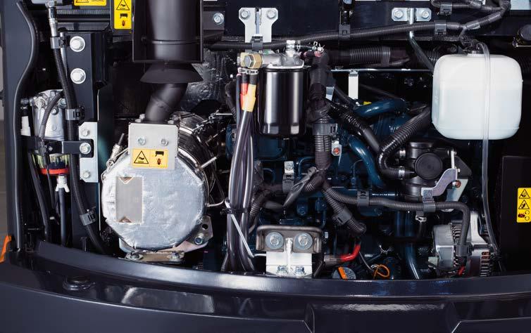 The new Kubota's direct-injection engine is equipped with CRS and with a new and improved DPF which reduces maintenance by increasing the service intervals for both the regeneration filter and ash cleaner.