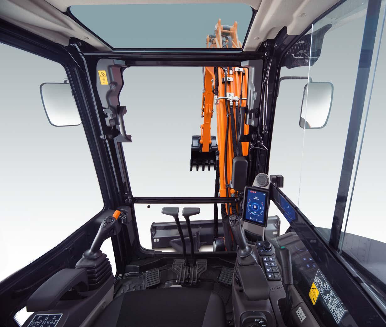 The new cab design and interior layout not only optimize operability, but also provide much more foot space for greater operator comfort.