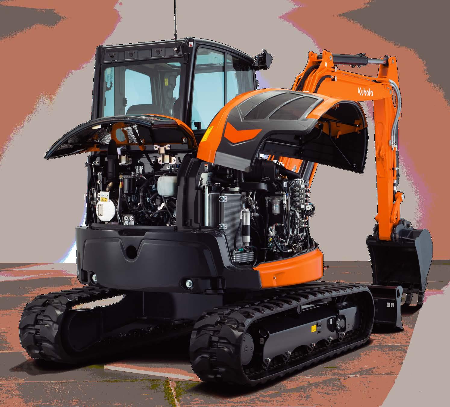 The new Kubota's direct-injection engine is equipped with CRS and with a new and improved DPF which reduces maintenance by increasing the service intervals for both the regeneration filter and ash cleaner.
