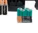 KIT INCLUDES: Optical power meter, LED light , Laser light source, carrying case, recharger & rechargeable batteries, DC power supply, LC light source, LC backloop, testing software, accessory case, LC/ LC-LC/SC 3 ft. duplex OM4 jumper, LC/LC-LC/SC 3 ft. duplex OS2 jumper, SC/LC 3 ft. simplex OM4 jumper, SC/LC 3 ft. simplex OS2 jumper, CR2 batteries (non-rechargeable)