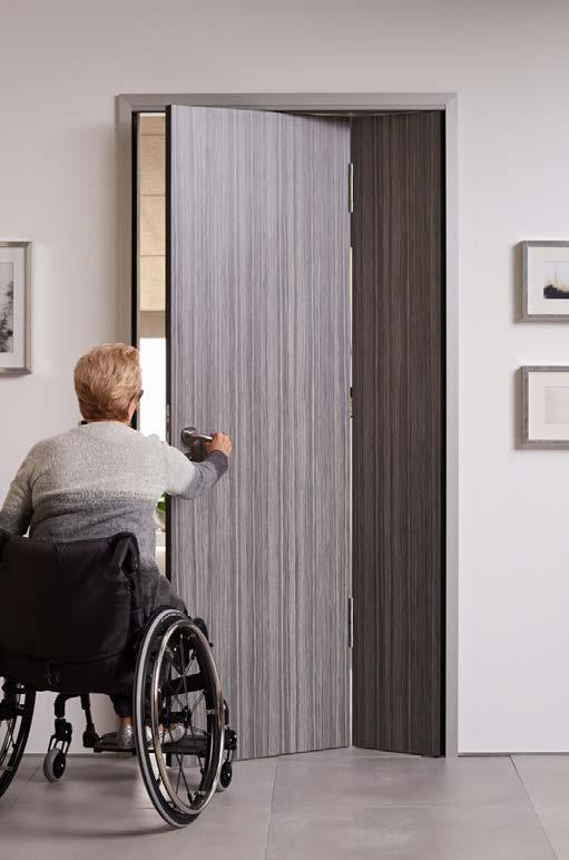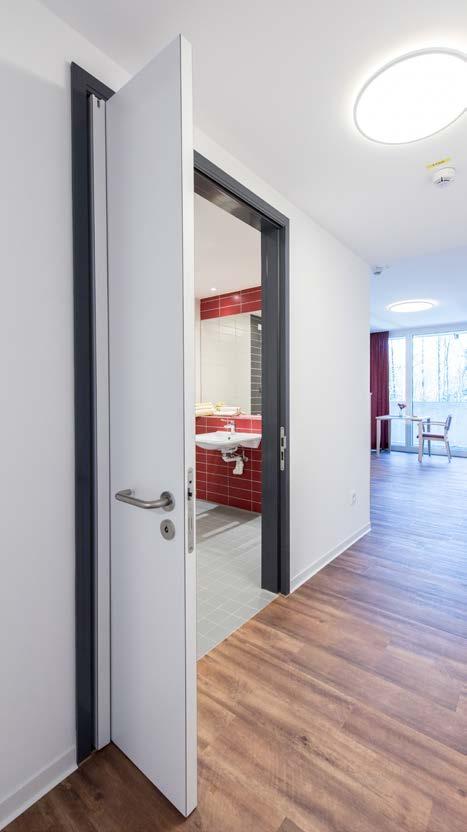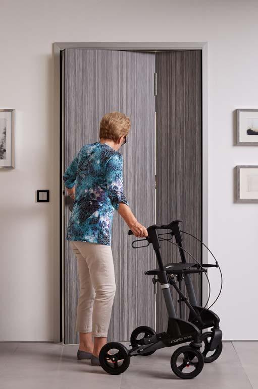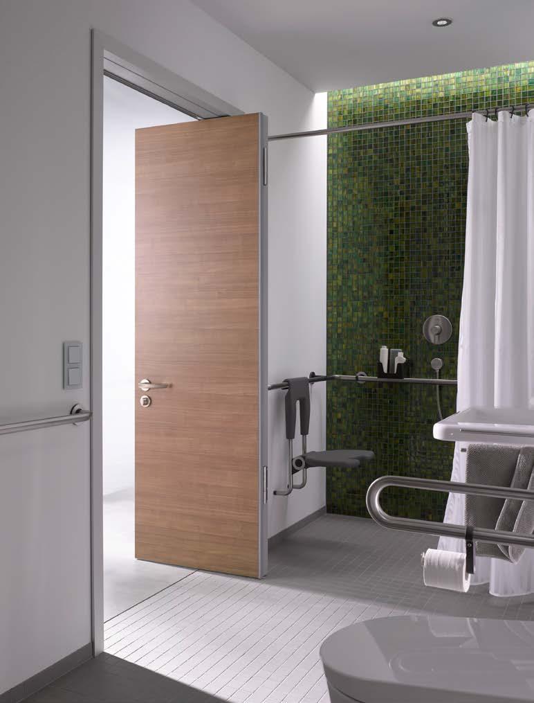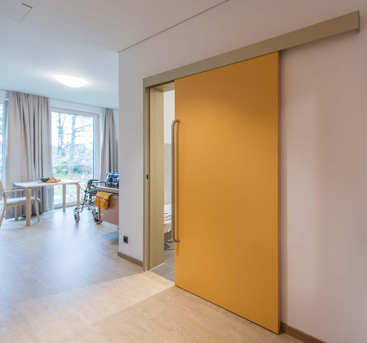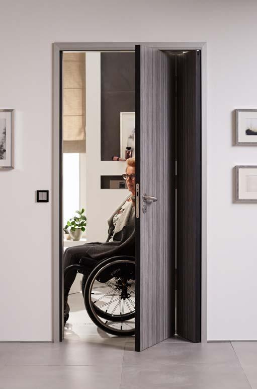 Damals hieß das nur anders - wir bauten behindertengerechte Türen. Nachhaltigkeit hat nämlich eine soziale Komponente. Heute wissen wir, dass die barrierefreie Bauweise besonders geeignet und nachhaltig im Sinne einer flexiblen und dauerhaften Nutzung ist. Insofern waren wir früh unserer Zeit voraus, mit Produkten die an ihrem Bestimmungsort funktional und langlebig sind, wie zum Beispiel unsere barrierefreien Raumspartüren für Menschen, die auf Rollator oder Rollstuhl angewiesen sind.