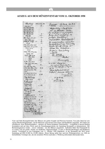 AUSZUG AUS DEM MÜNZINVENTAR VOM 11. OKTOBER 1950