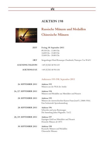 Auktion 197 Geprägtes Gold aus Mittelalter und Neuzeit Deutsche Münzen ab 1871 Auktion 198 Russische Münzen und Medaillen Chinesische Münzen