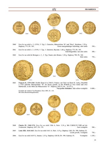 François II, 1559-1560. Double Henri d'or 1560 G, Poitiers. mit Titel von Henri II. 5,60 g. Brustbild r.//Vier gekrönte Monogramme "H" ins Kreuz gestellt, in den Winkeln je zwei Lilien und zwei Halbmonde, in der Mitte das Münzzeichen "G". Duplessy 1022 A; Fb. - zu 377 a. Von großer Seltenheit. Sehr schön-vorzüglich