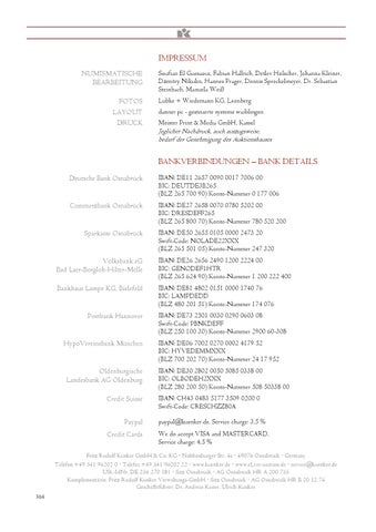 Fritz Rudolf Künker GmbH & Co. KG Nobbenburger Str. 4a 49076 Osnabrück Germany Telefon +49 541 96202 0 Telefax +49 541 96202 22 www.kuenker.de www.eLive-auction.de service@kuenker.de USt.-IdNr. DE 256 270 181 Sitz Osnabrück AG Osnabrück HR A 200 755 Komplementärin: Fritz Rudolf Künker Verwaltungs-GmbH Sitz Osnabrück AG Osnabrück HR B 20 12 74 Geschäftsführer: Dr. Andreas Kaiser, Ulrich Künker 304