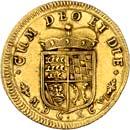 20611/2 Karolin 1736, Stuttgart. 4,77 g. Typ 5 (Brustbild im Harnisch mit Vlieskette, Hermelinmantel mit Spange auf der Brust zusammengehalten). Ohne Stempelschneidersignatur auf der Vorderseite und kurzer Ordenskette auf der Rückseite. Geharnischtes Brustbild r. mit umgelegtem Mantel und der Kette des Ordens vom Goldenen Vlies//Vierfeldiges Wappen (Teck, Reichssturmfahne/Mömpelgard, Heidenheim) mit Mittelschild von Württemberg, darunter die Kette des Ordens vom Goldenen Vlies, auf gekröntem Wappenmantel, unten die geteilte Signatur F - B (Johann Friedrich Breuer bzw. Breyer, Münzmeister in Stuttgart 1734-1738) zwischen der geteilten Jahreszahl Û 17 - 36 Û. Mit Laubrand. Fb. 3590; Klein/Raff 175. GOLD. Von großer Seltenheit. Fast sehr schön/sehr schön500,-Exemplar der Auktion Gerhard Hirsch Nachf. 261, München 2009, Nr. 1391. Privat erworben im April 2010.