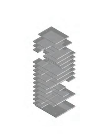 Exploded Axon of an Example Bay with all layers of the triple facade, demonstrating the versatility of the customizable combinationsfor each specific floor
