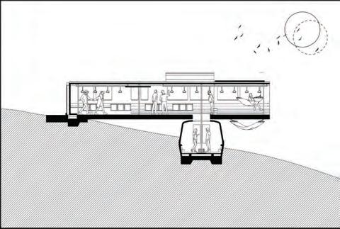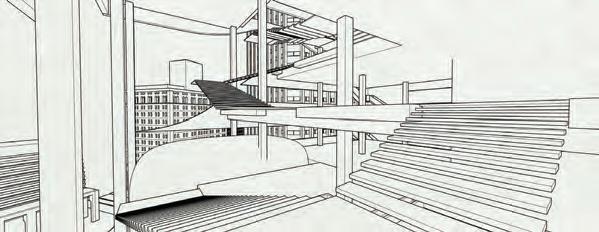 A parking garage turned film enthusiast central has been designed with the intent of creating a tension between realities and the stretching of them. In relation to film, oftentimes things done off script produce unpredictable gems and experiences that couldn’t have been done with a script. Similarly through the various forms in the parking garage there’s a sense of stretching the bounds and limits to create non-traditional forms and unique experiences for particular programs.
