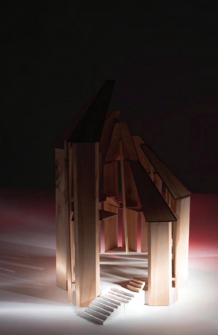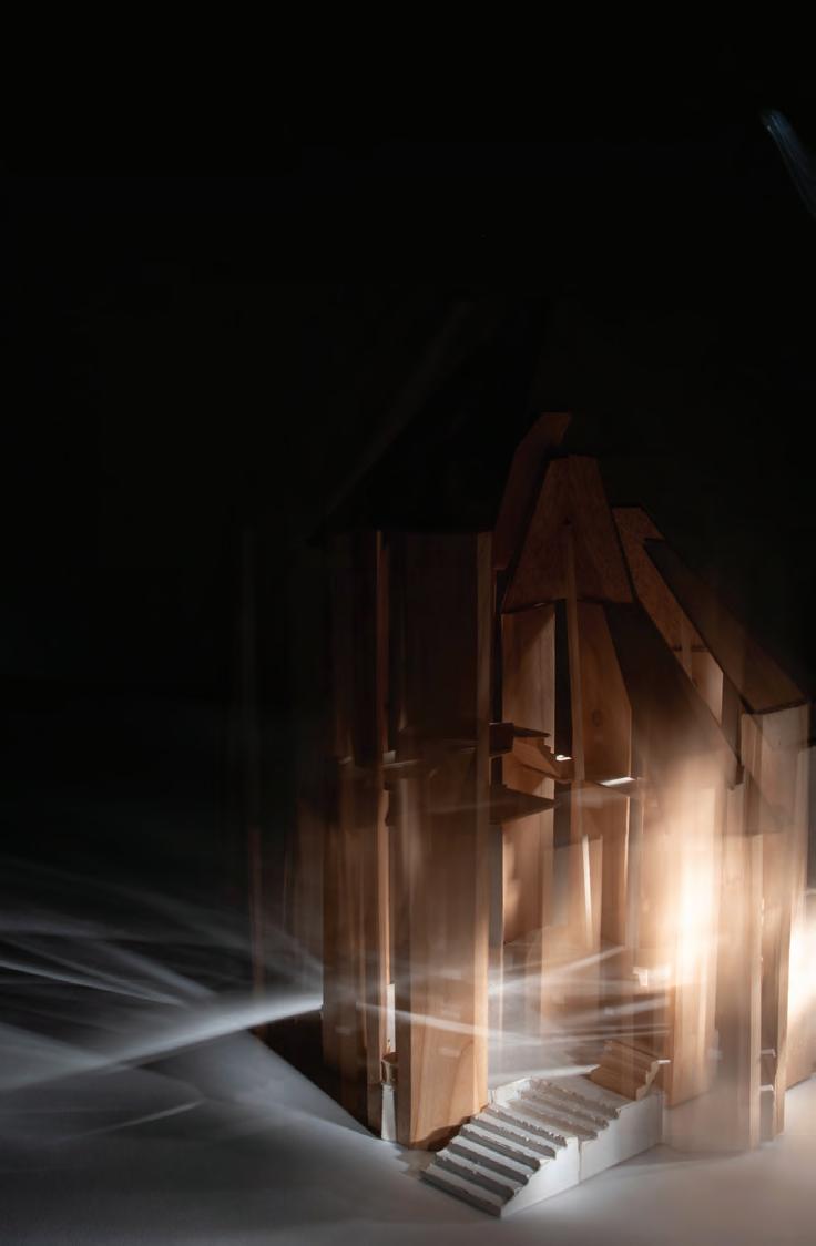 Reinterpreting the historical precedent for the representation and construction of architecture. Relating the building and its making through the cast plaster floor and its 1:1 scale etchings. Utilizing the framework of the model into the construction of the final model to consider how the structure expresses its construction.