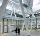 facade panels point to the swirling transluscent collaborative cloud where researchers, visitors, plants, and robots interact