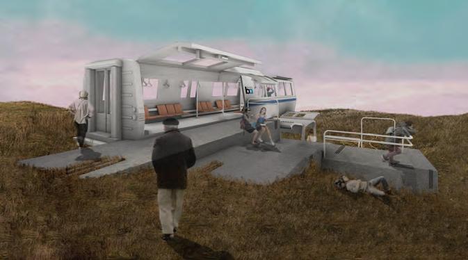 19 - Community Spaces on a thickened walkway (held up by thin steel columns)