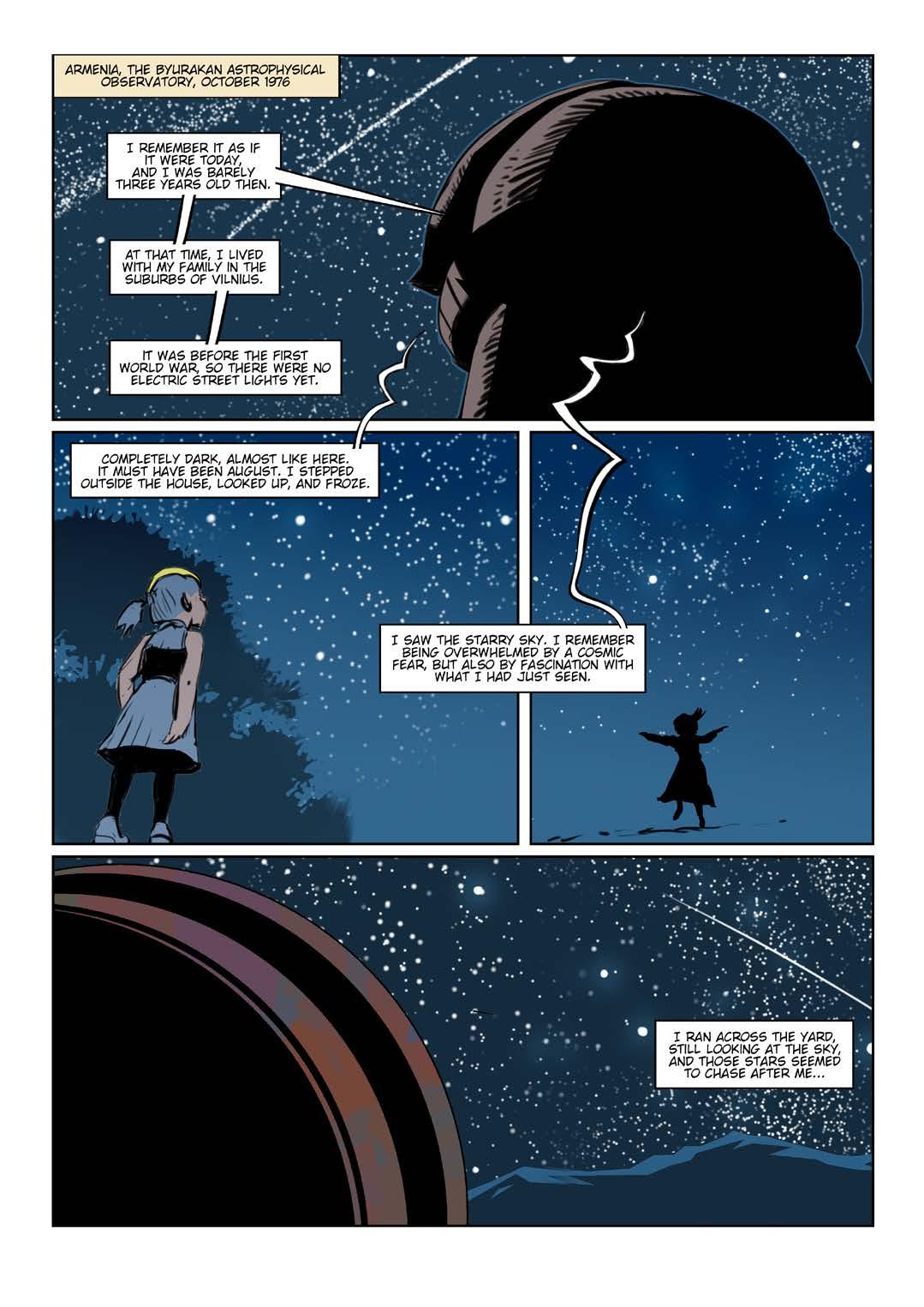 Somewhere far away in the Solar System, the asteroid 198820 Iwanowska orbits through space. Could the young heroine of our comic book, gazing at the sky above Vilnius with both fear and awe, have imagined that she would one day become one of Poland’s most distinguished women astronomers and that a celestial body would bear her name? Certainly not. Yet it was then that she developed a desire to explore the mysteries of the Universe – frightening on the one hand, but fascinating and alluring on the other.