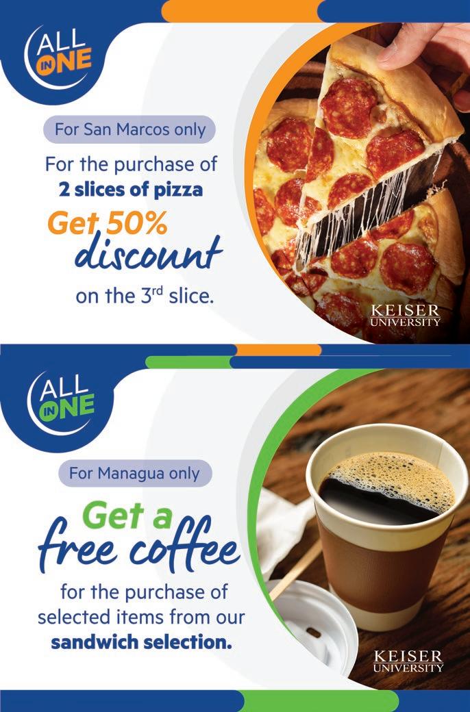 50% de descuento en el segundo café de 12oz. (calientes o fríos) al presentar este cupón.