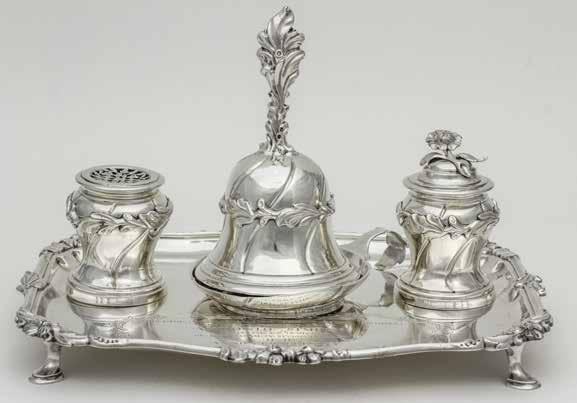 De primus kreeg van zijn geboortedorp of -stad een mooi geschenk, vaak zilverwerk, zoals dit vijfdelige schrijfstel, dat de universiteit enkele jaren geleden kon verwerven uit een privéverzameling. Het werd in 1771 door de stad Breda geschonken aan primus Antonius Simons. Op het blad, dat rust op vier pootjes, zijn een zandstrooier, een tafelbel en een inktkoker geplaatst; onder de bel bevindt zich een kleine kaarshouder.