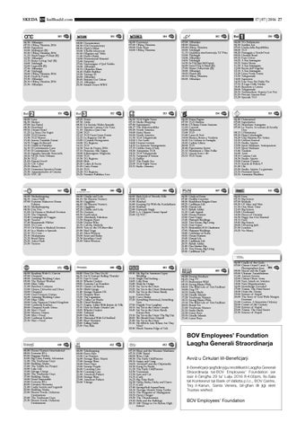 101 08.00 Documentary 08.30 F24 Documentary 08.45 Hadt l-Ahbar 10.00 X’Joffri l-Kunvent 10.30 Fil-gnien ma’ Melo 11.00 Ħadd Għalik 14.00 Promotional Material 15.00 Simpatiċi 17.05 Ninvestigaw x’Qed Nieklu 18.00 Aħbarijiet 18.15 Għawdex Illum 18.45 Ħallih Iħabbat 19.30 Tertuqa 35 20.00 Aħbarijiet 20.45 Britians Got Talent 23.15 Aħbarijiet 23.30 Smack Down WWE
