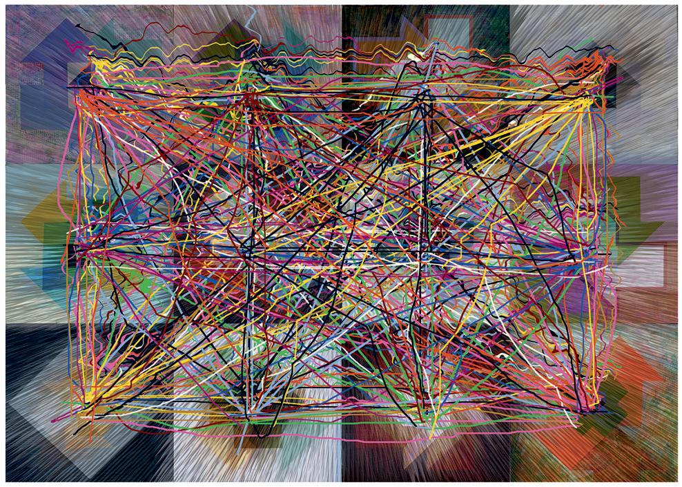 Szóval a vezetékek, a huzalok, a vonalak, a szálak összekötnek és/vagy kereszteznek, ezzel együtt valami szabályos rendszert, vagy annak tűnőalakzatothoznaklétre.