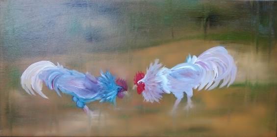 központi történetéhez nyúl, s annak is a legdrámaibb pillanatához. Azt látjuk, hogy a megfeszített Jézus alakja éppen szétfeszíti a képkeretet. E csoportba tartozik még Csajbók Katalin daliás kakasok konfliktusát ábrázoló alkotása.