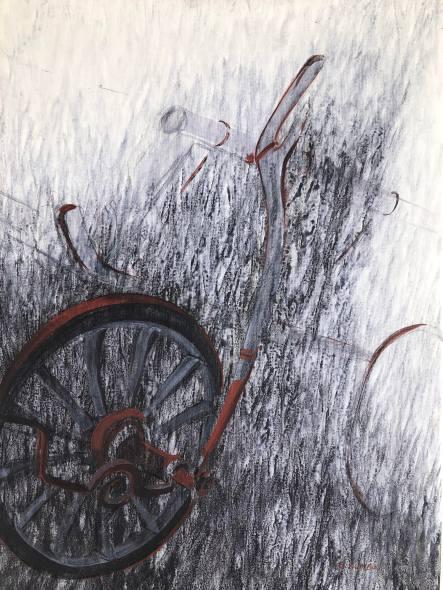 tározó elemévé. grafikus Bóka Gömbös Ilona karakterű festményén egy hagyományos parasztszekér van lendületben. Míg