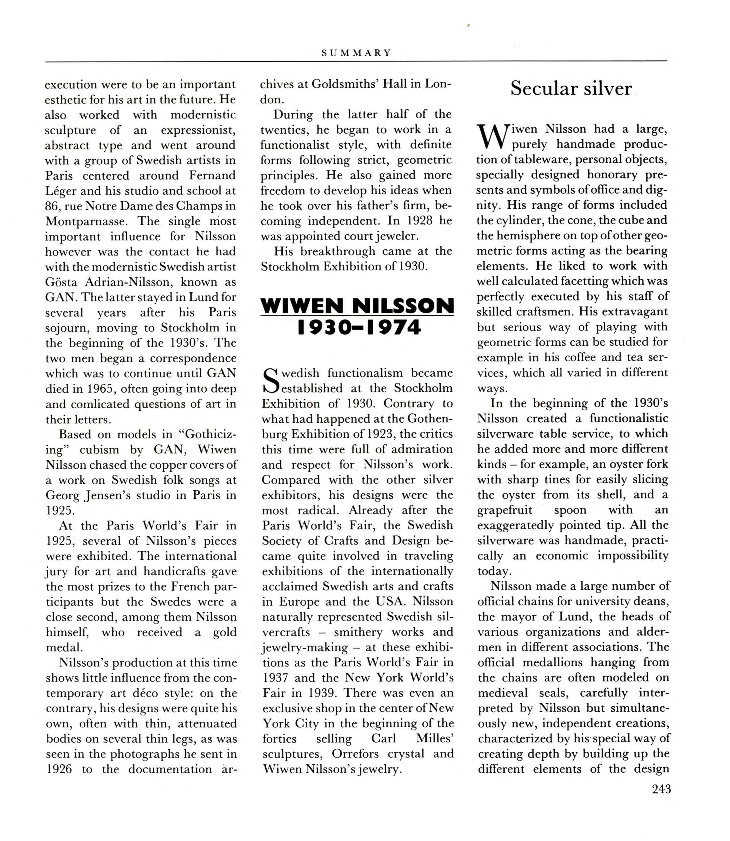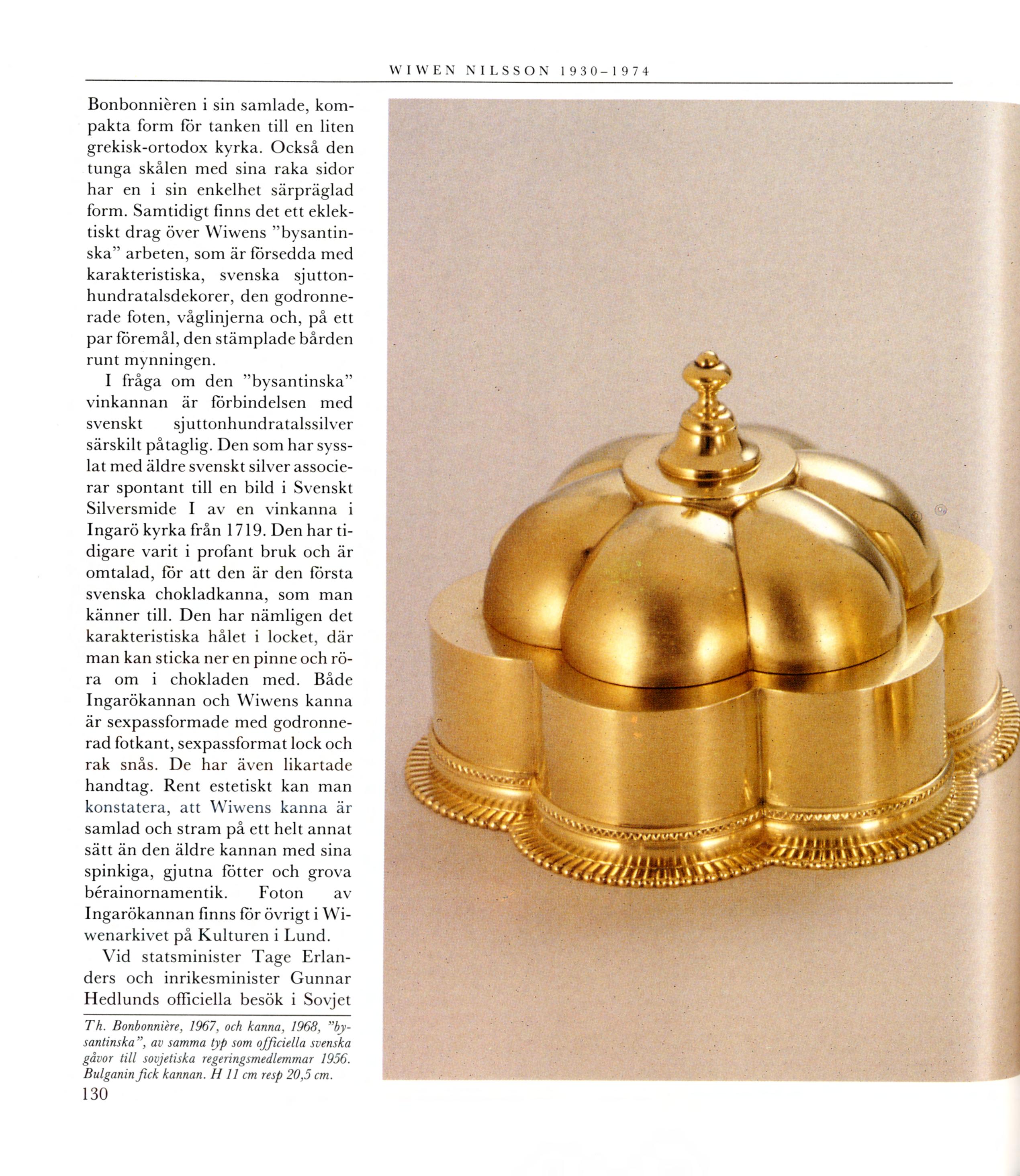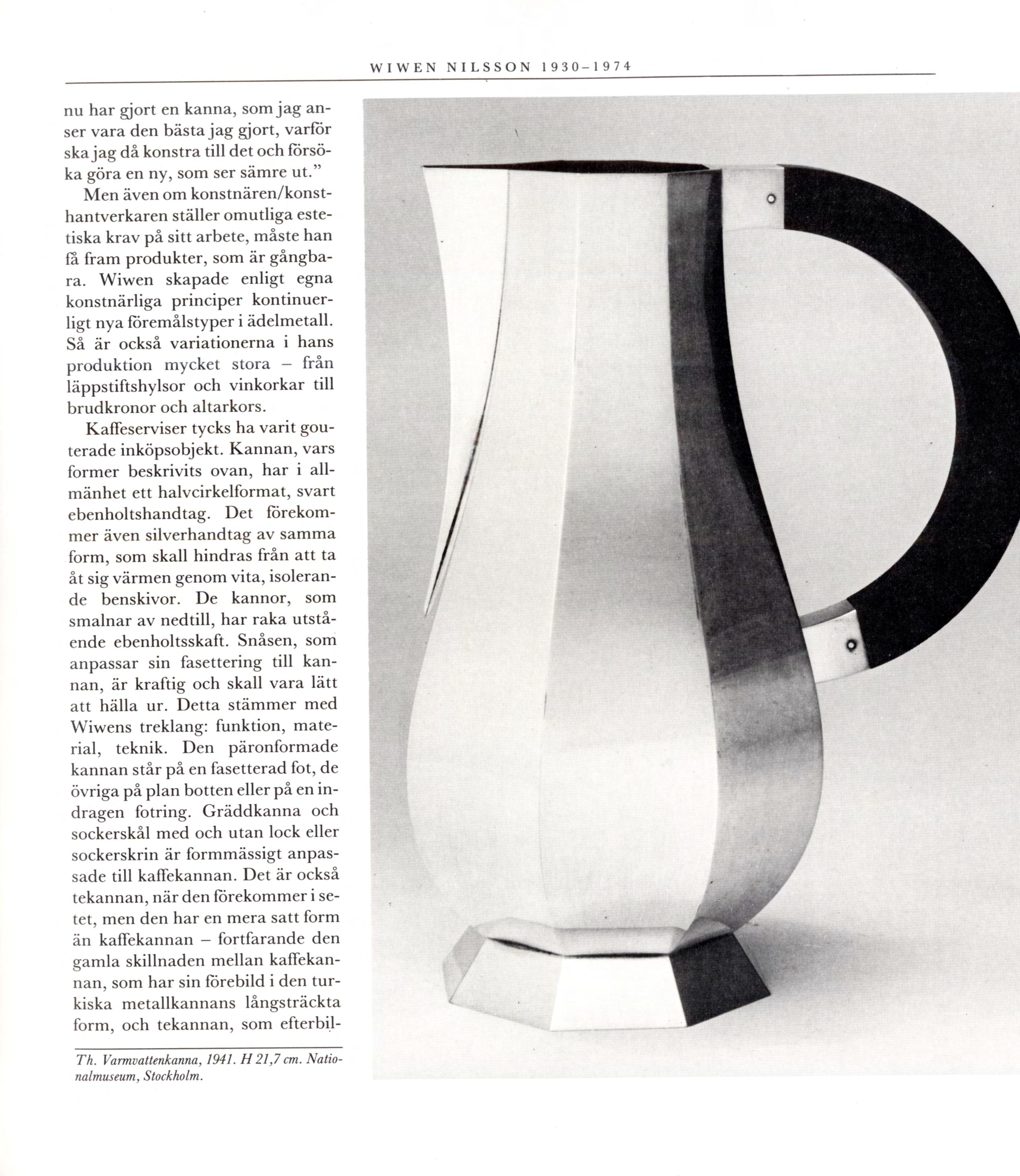 allowed Wiwen. Nilsson to create objects which reflect their time hut simultaneously are timeless in their perfect harmony.