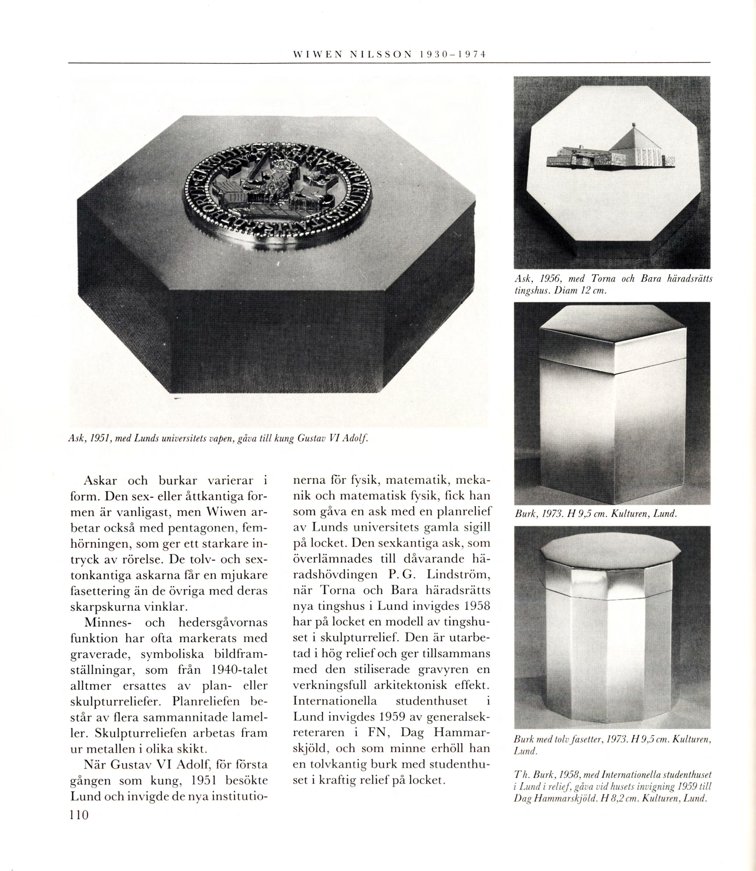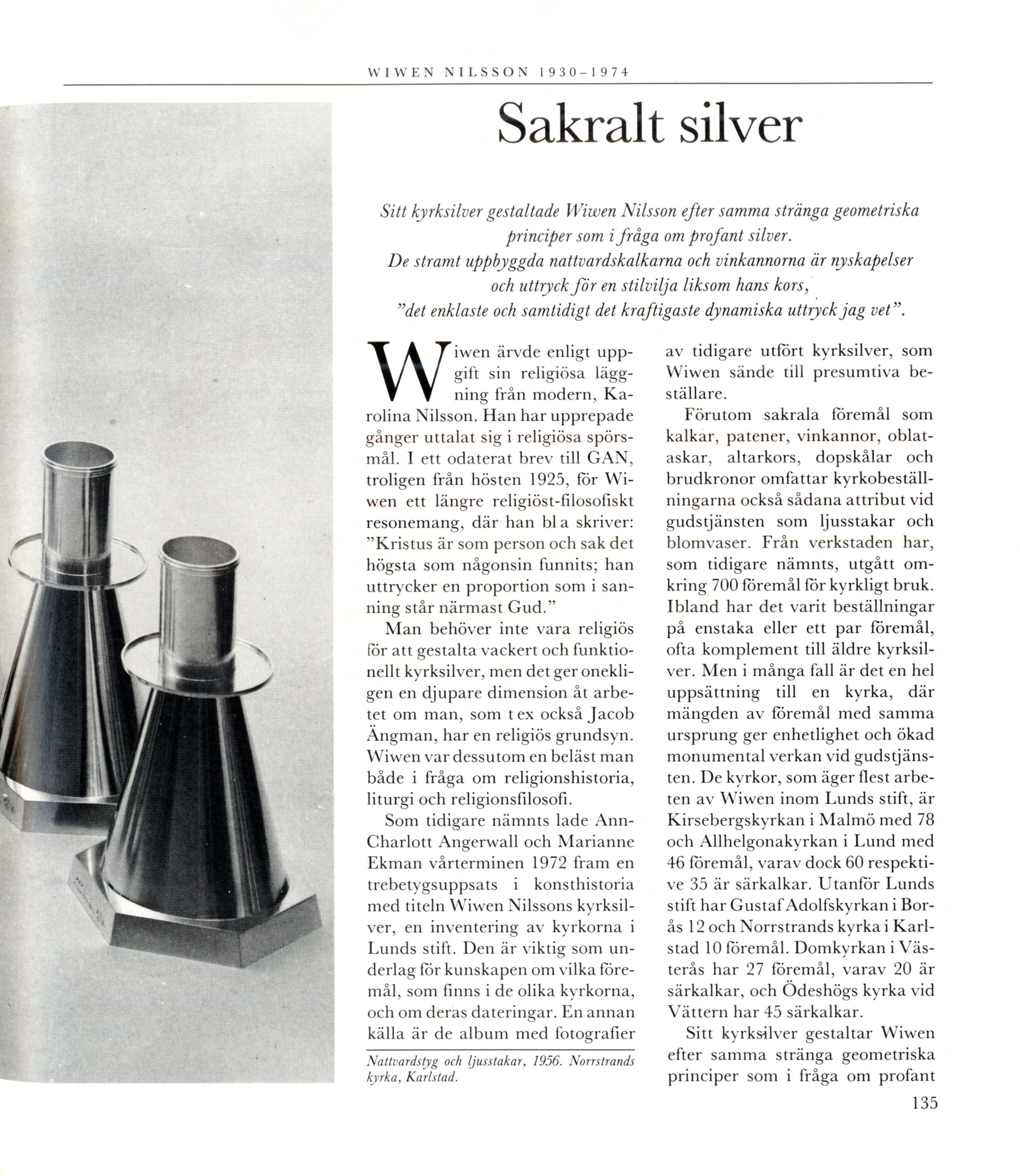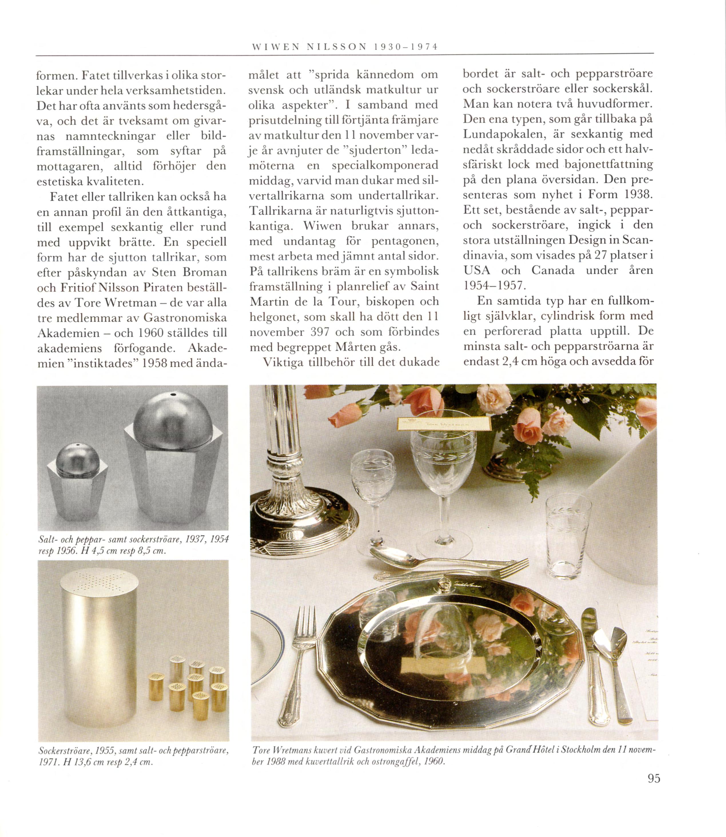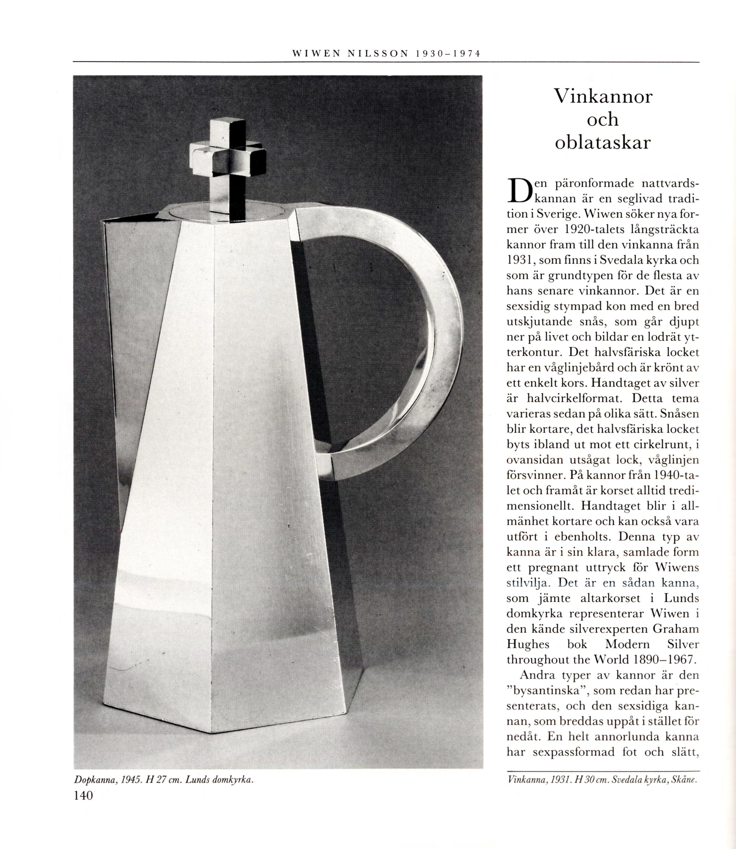 allowed Wiwen. Nilsson to create objects which reflect their time hut simultaneously are timeless in their perfect harmony.