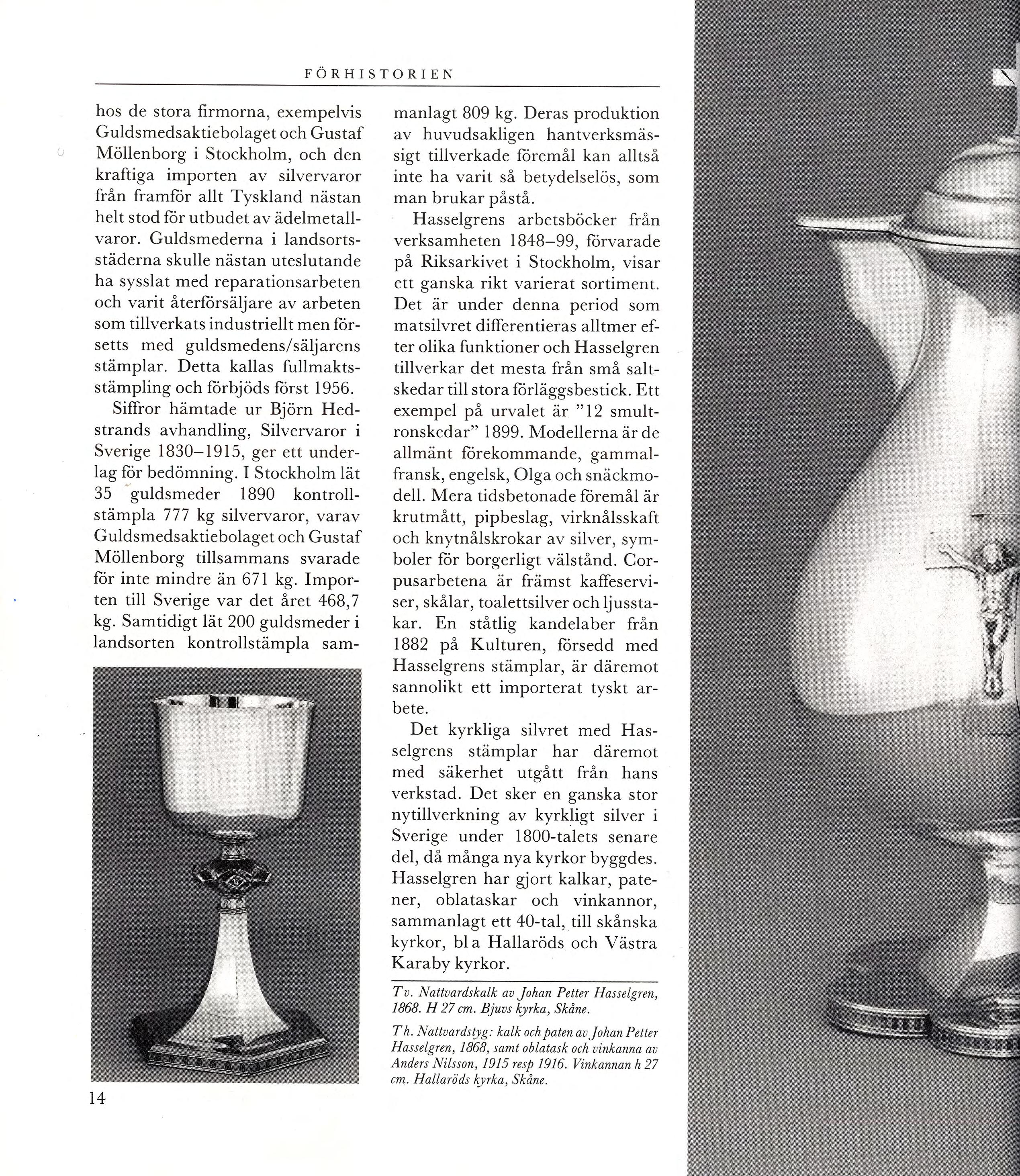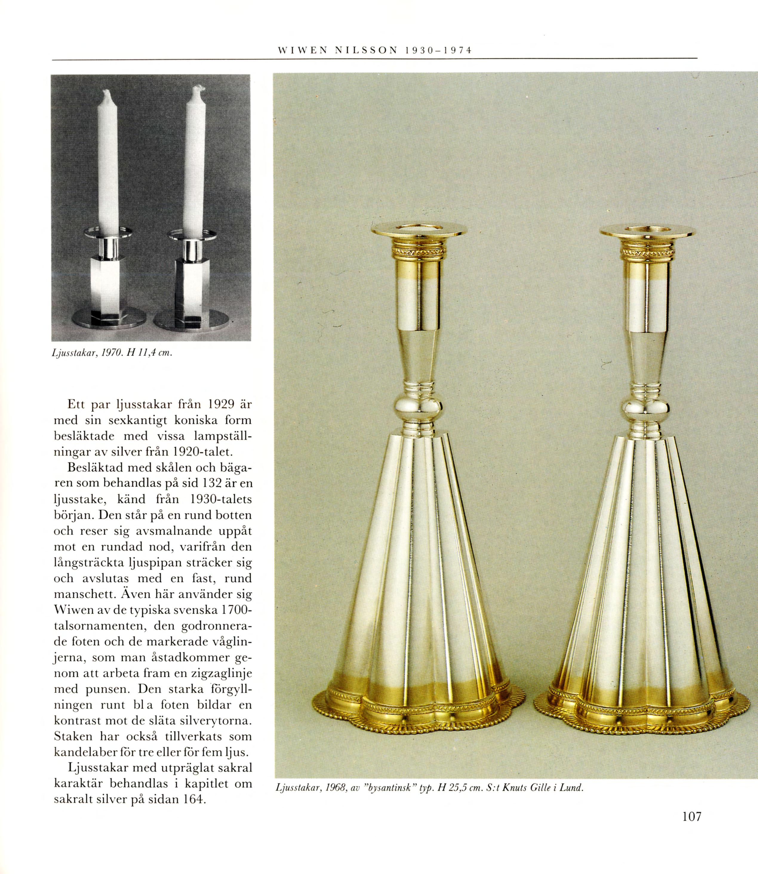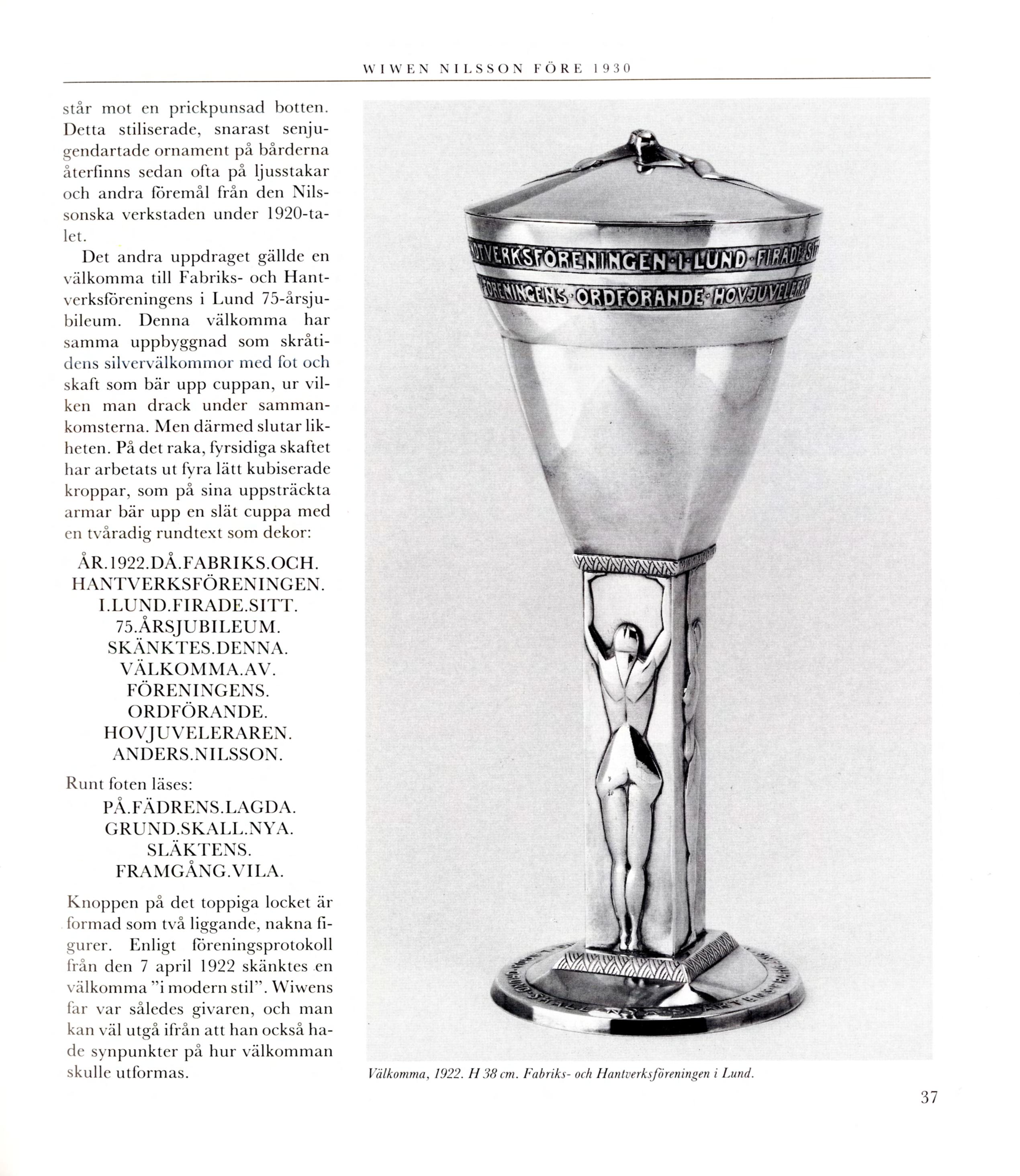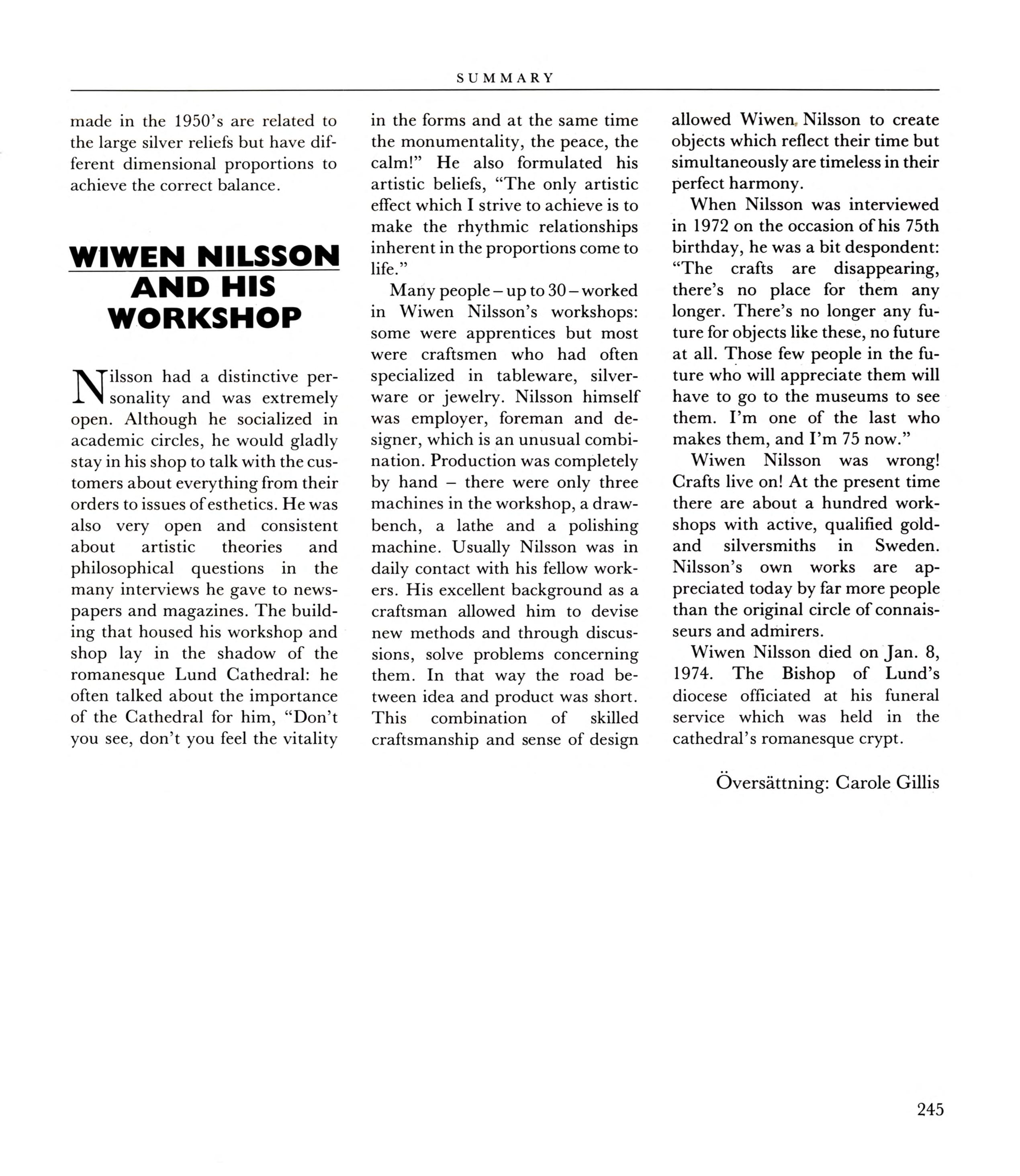 Wiwen Nilsson was wrong! Crafts live on! At the present time there are about a hundred workshops with active, qualified goldand silversmiths m Sweden. Nilsson's own works are appreciated today by far more people than the original circle of connaisseurs and admirers.