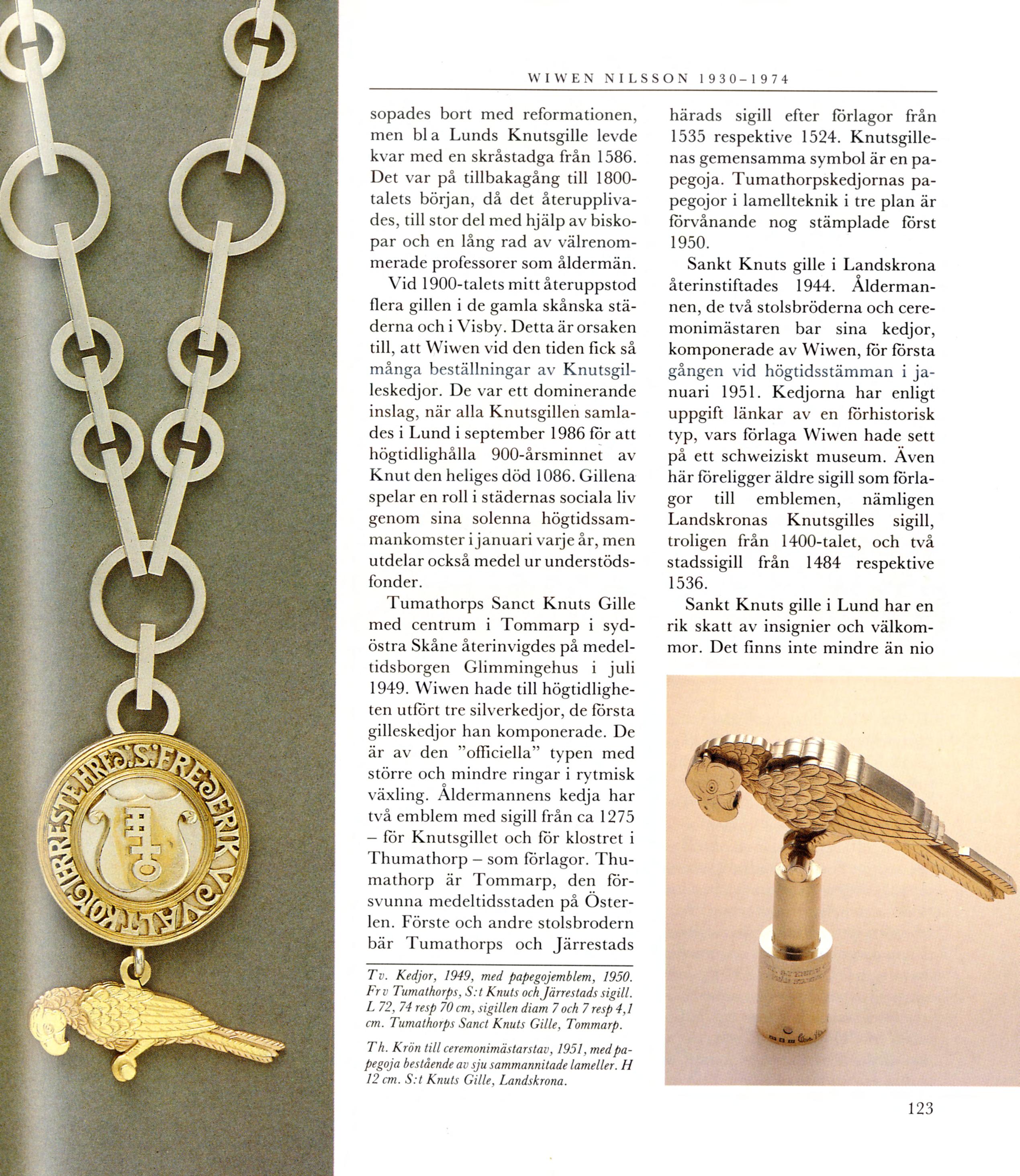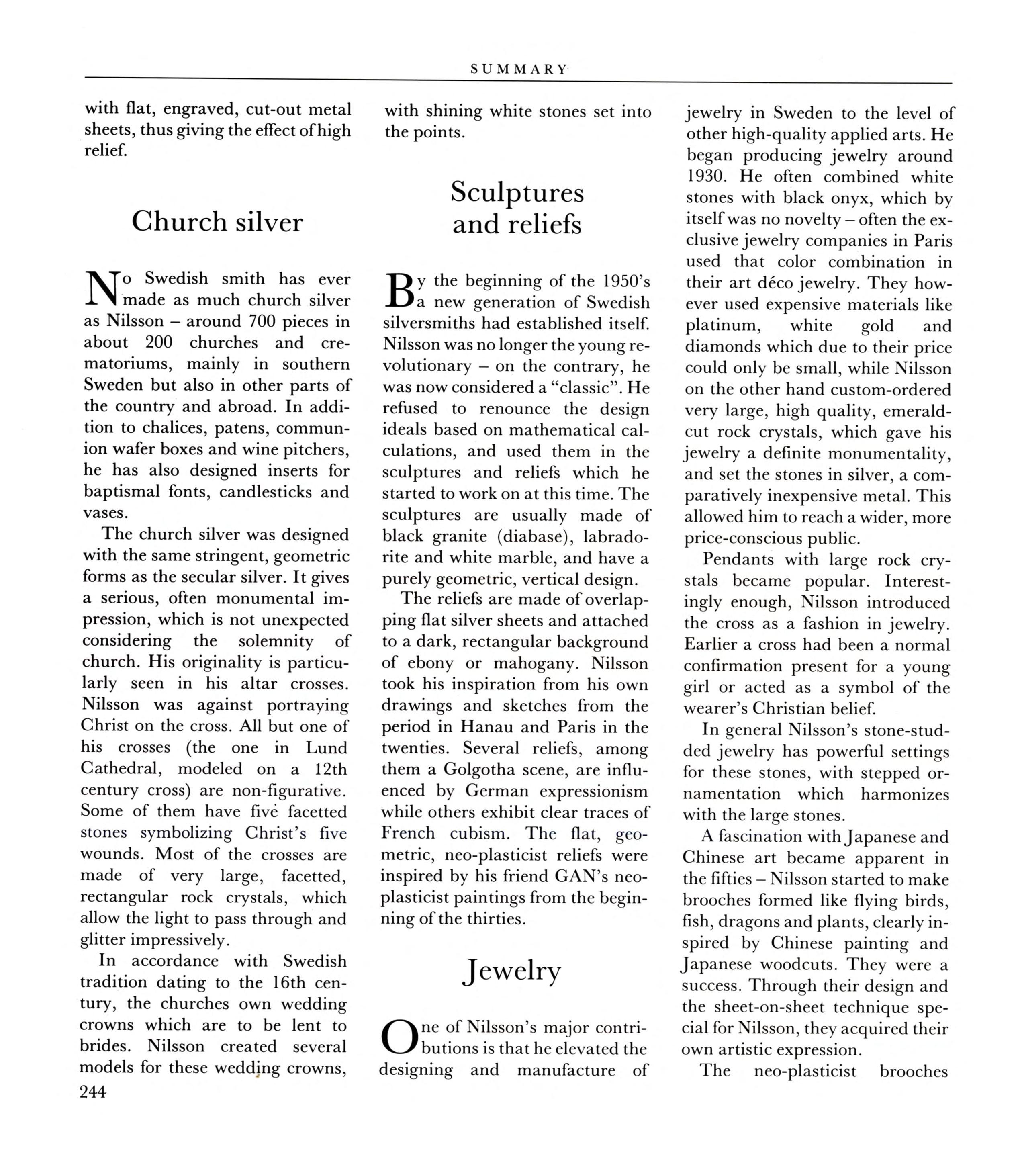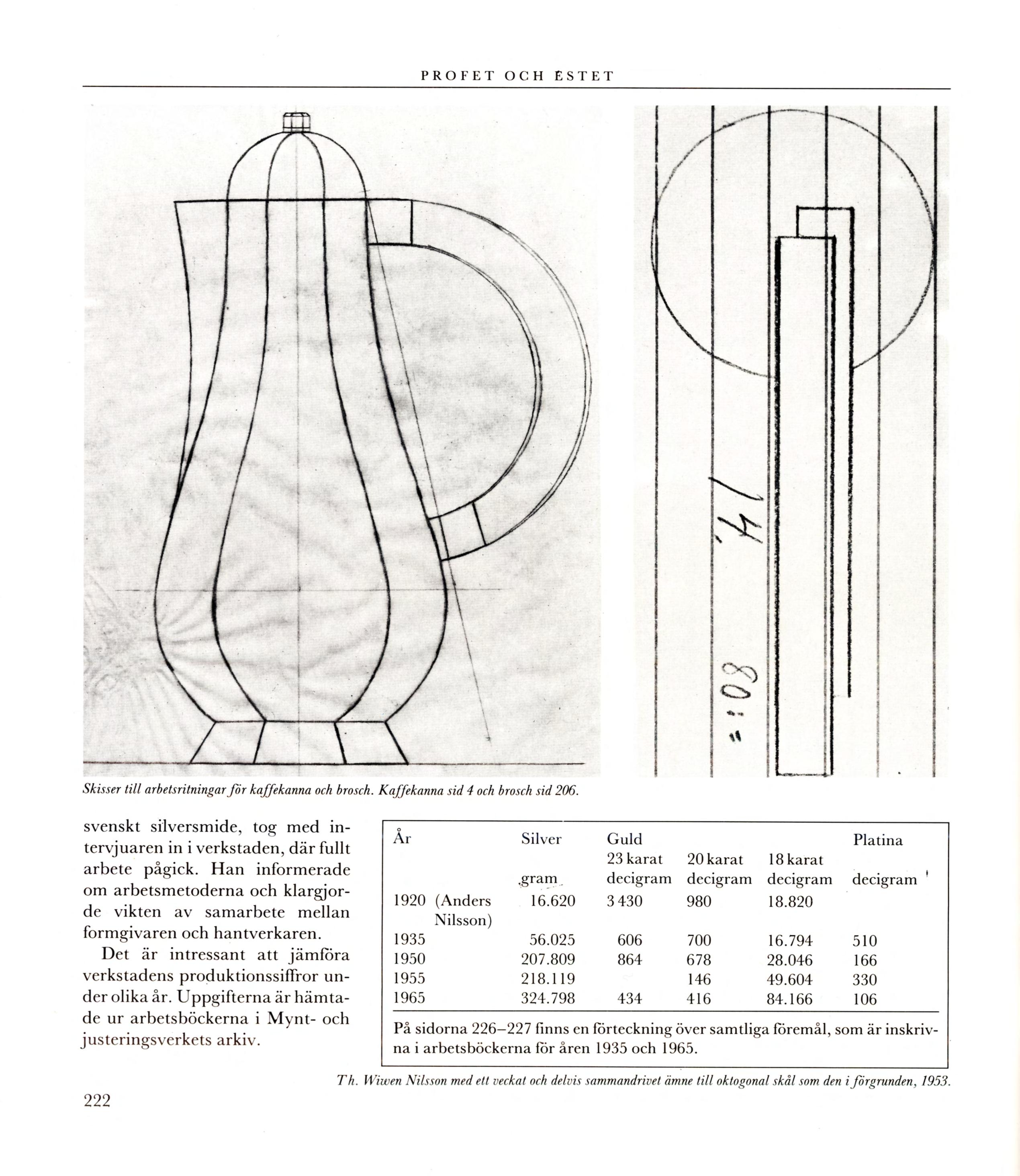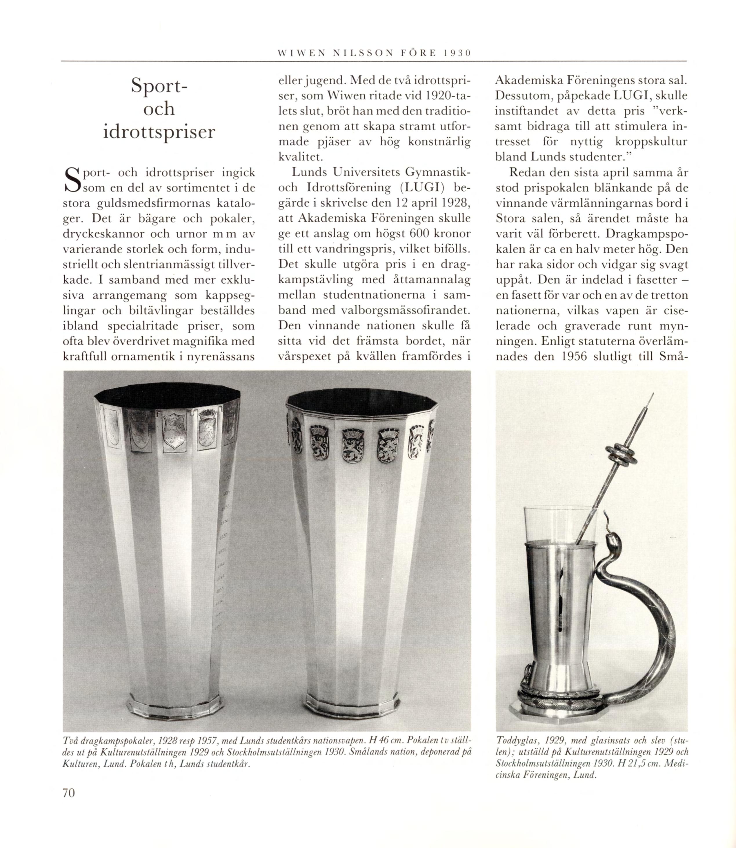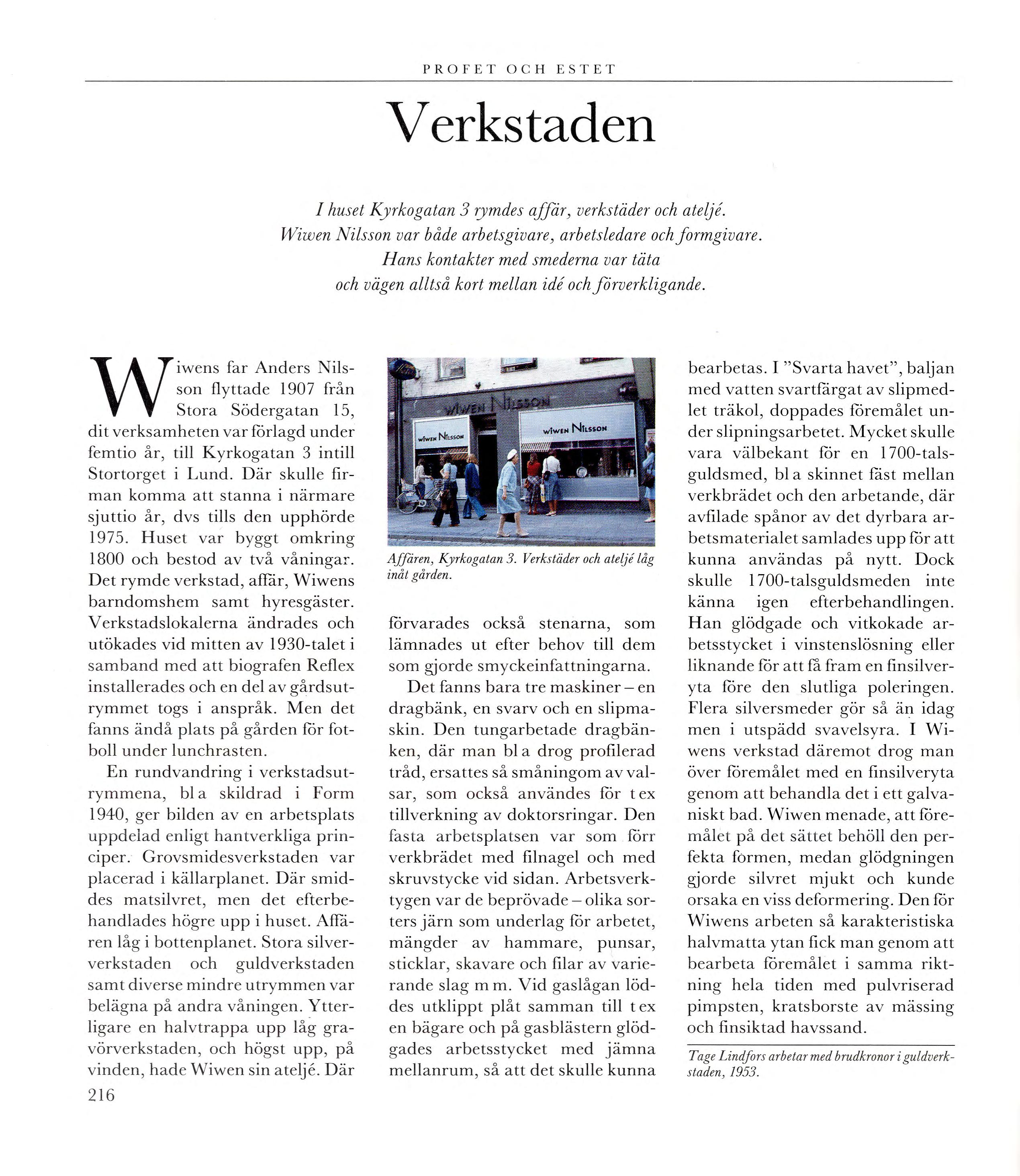 Wiwen Nilsson was wrong! Crafts live on! At the present time there are about a hundred workshops with active, qualified goldand silversmiths m Sweden. Nilsson's own works are appreciated today by far more people than the original circle of connaisseurs and admirers.