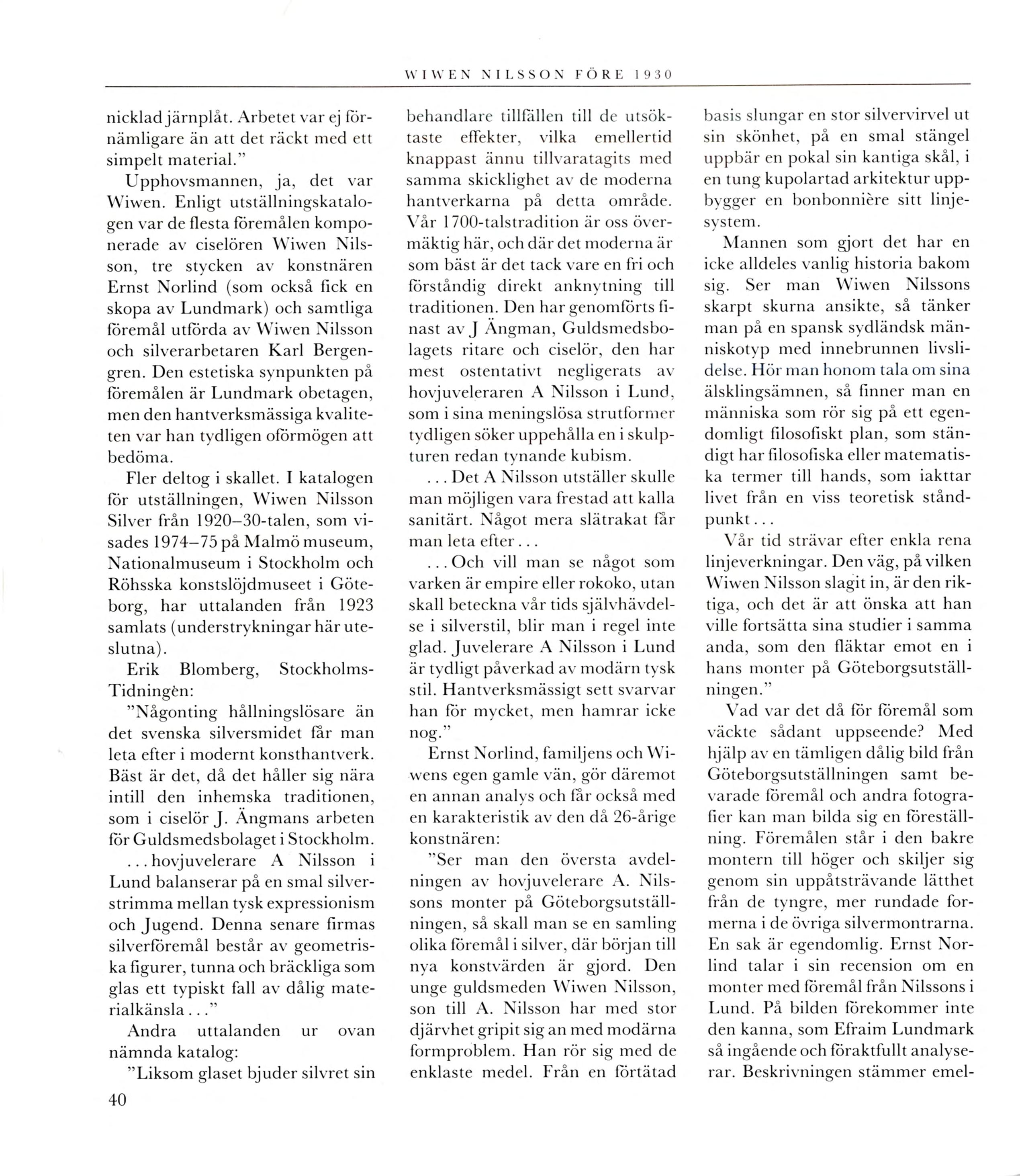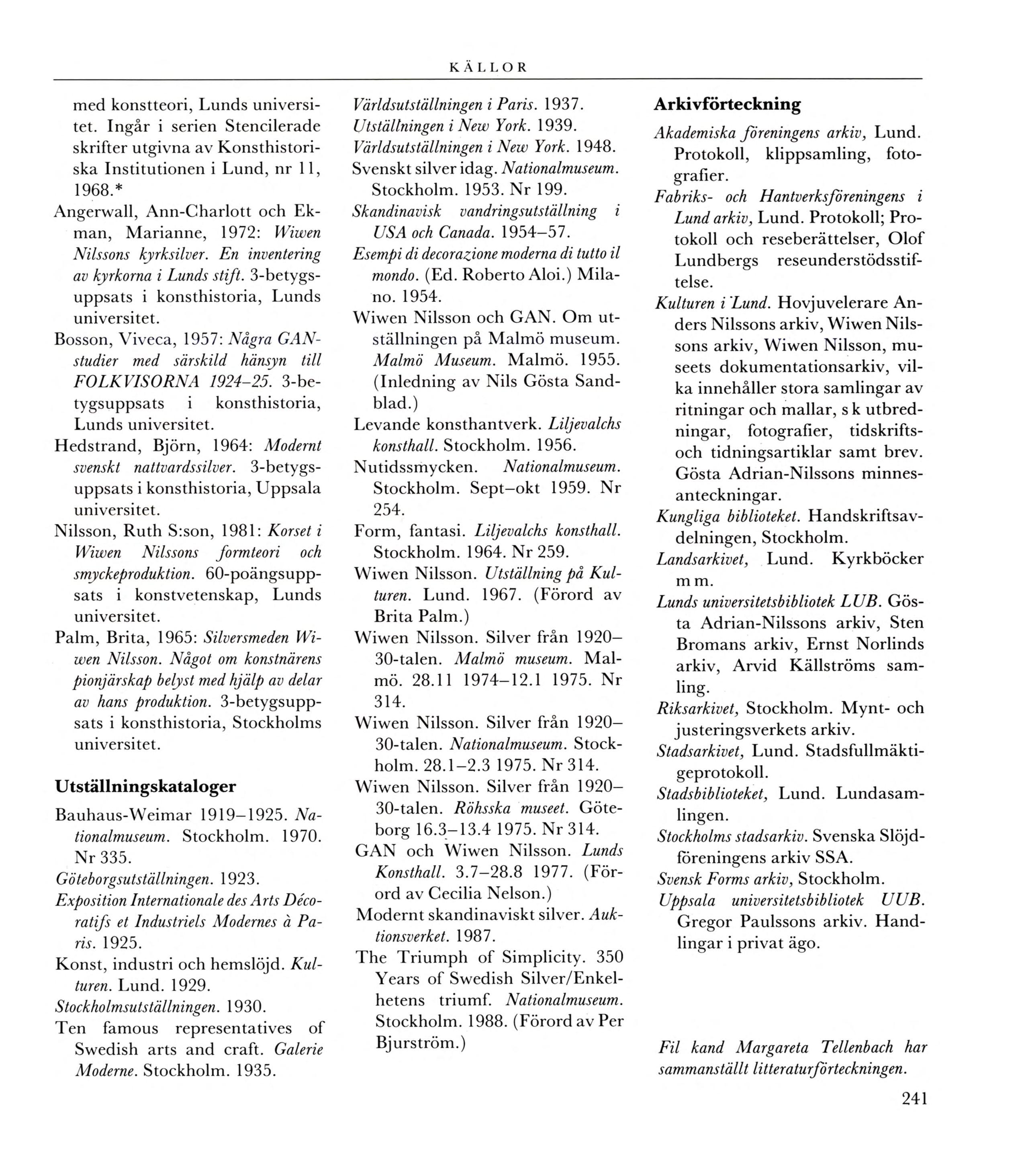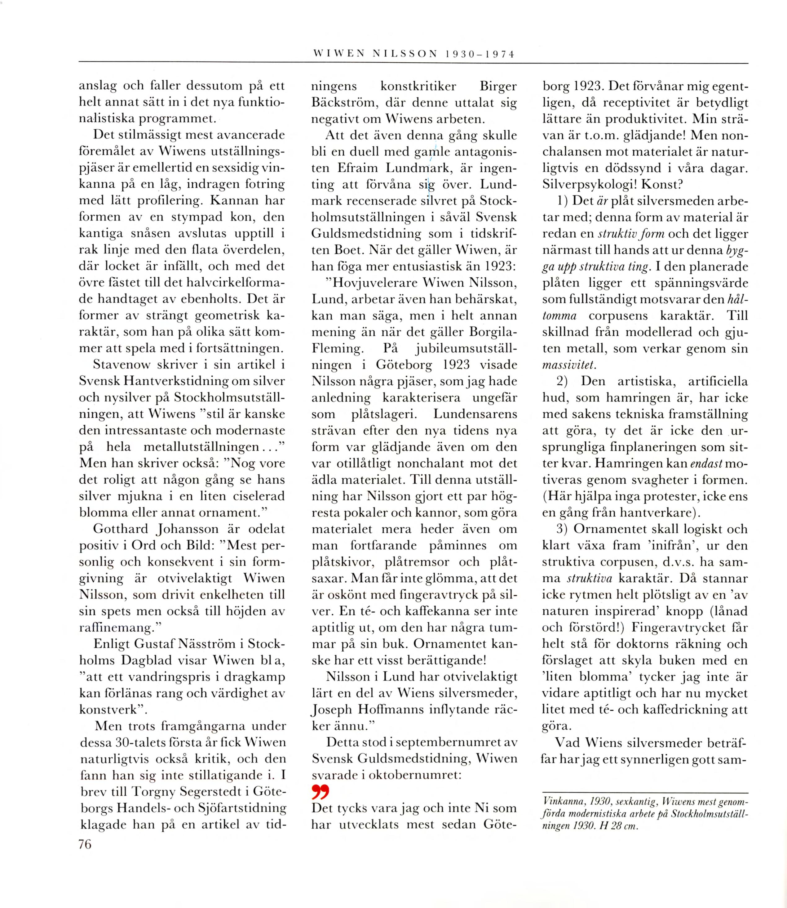 Wiw e n Ni ls son. Silver fr å n 192030 -t alen. Röh sska museet . Göteborg 16.3 -13.4 197 5. Nr 3 14.